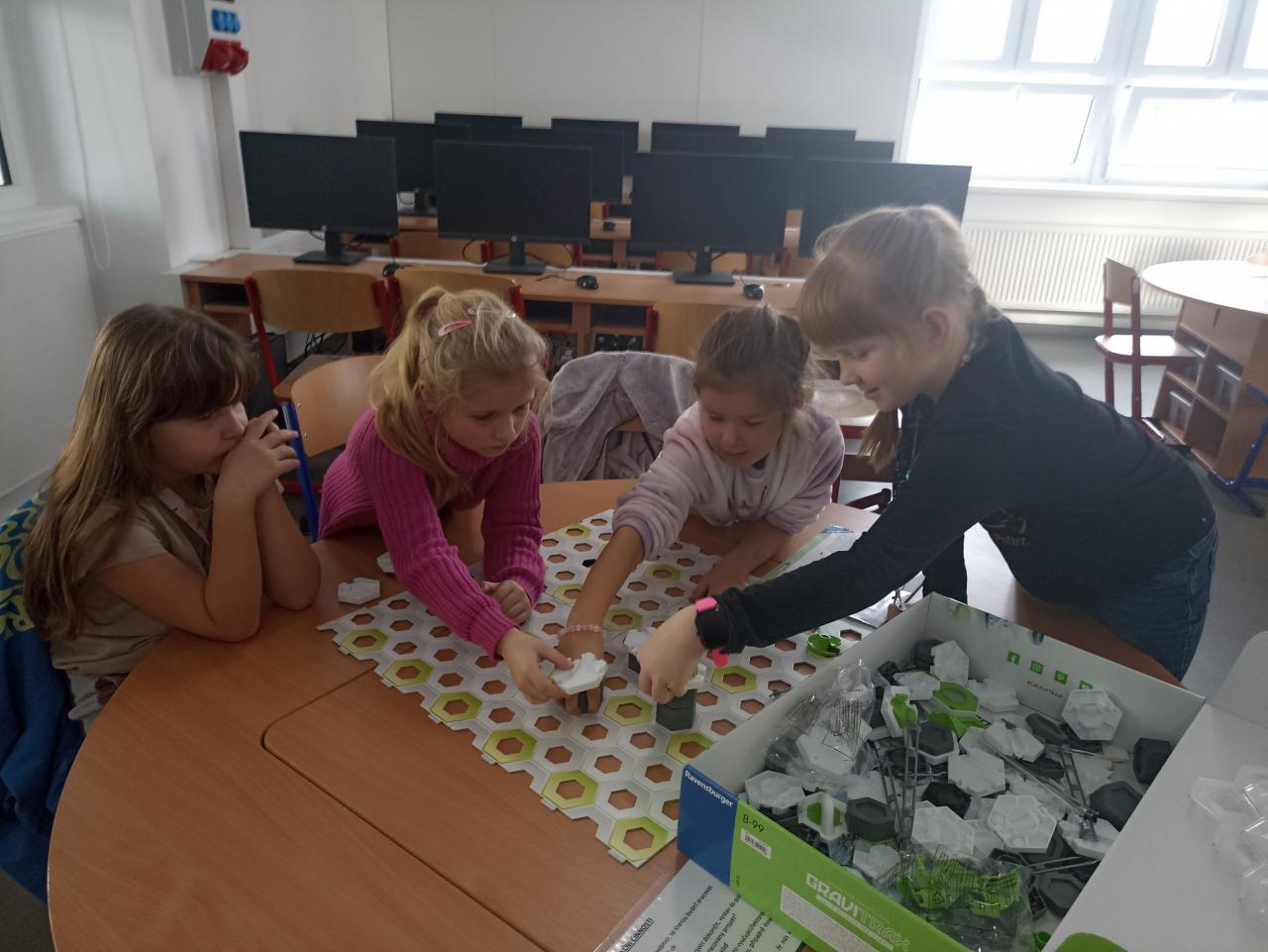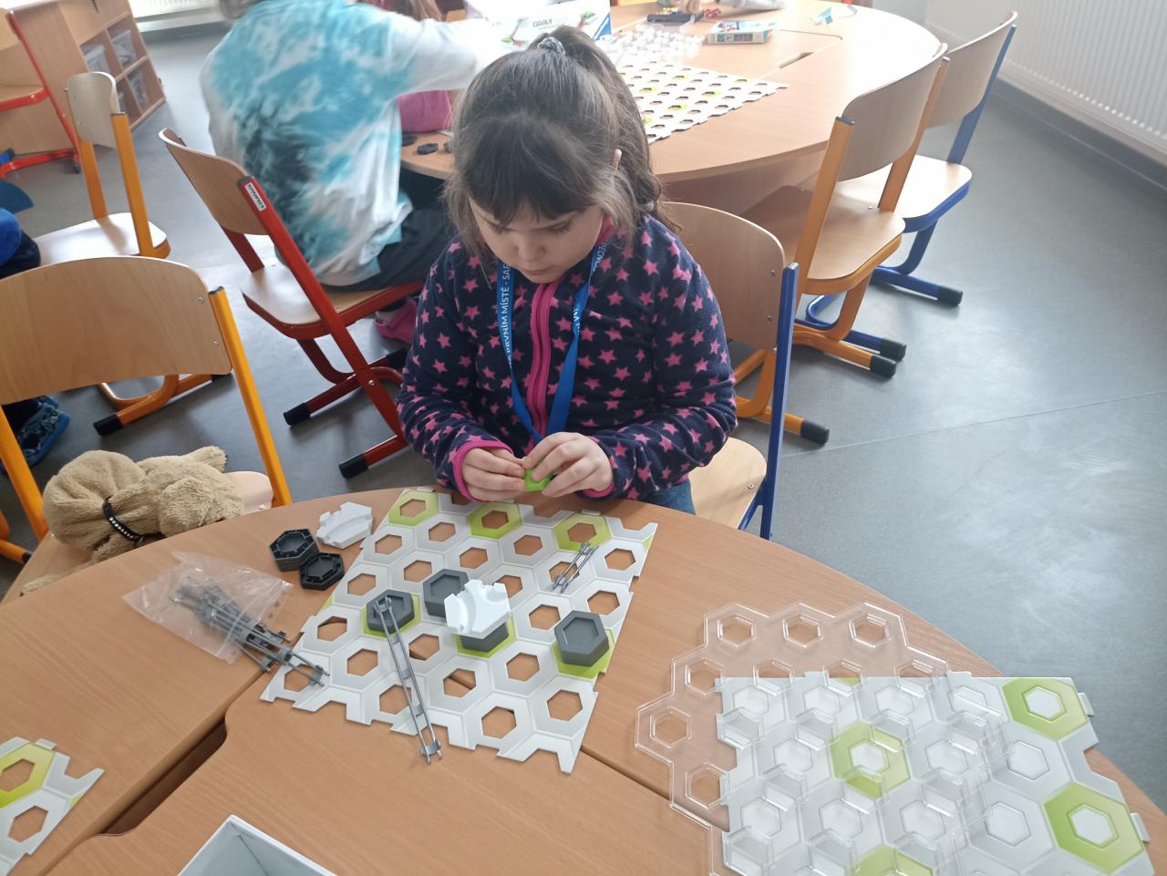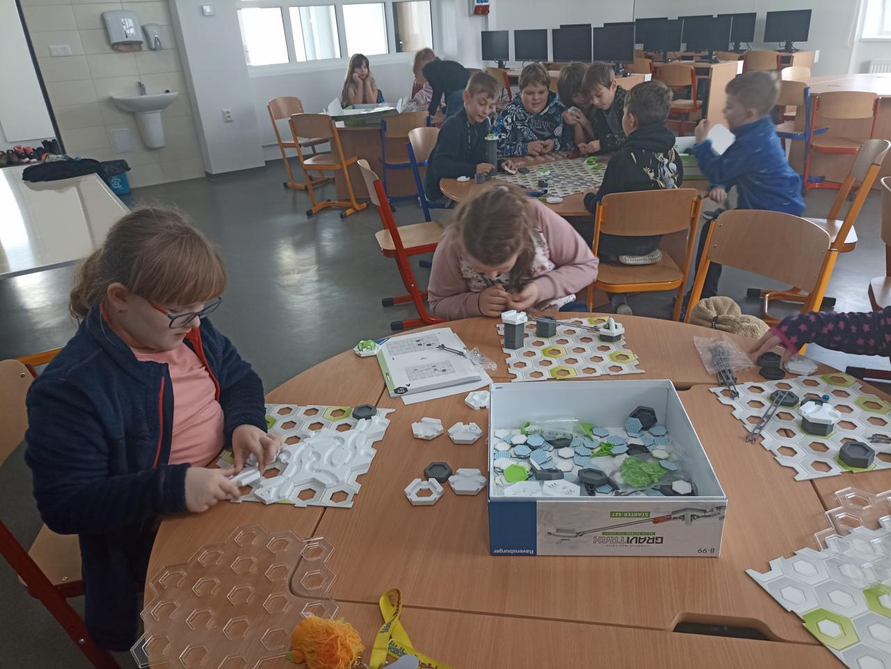 Pracovní činnosti jsme strávili v polytechnickém centru, kde nám přibyly nové stavebnice. Tentokrát jsme vyzkoušeli stavbu kuličkové dráhy GraviTrax. Myslíte, že to je "jen" hraní? Aby vše fungovalo, je třeba přemýšlet a zapojit šikovné ručičky :-) Prohlédli jsme si také pěstírnu a zvířátka.