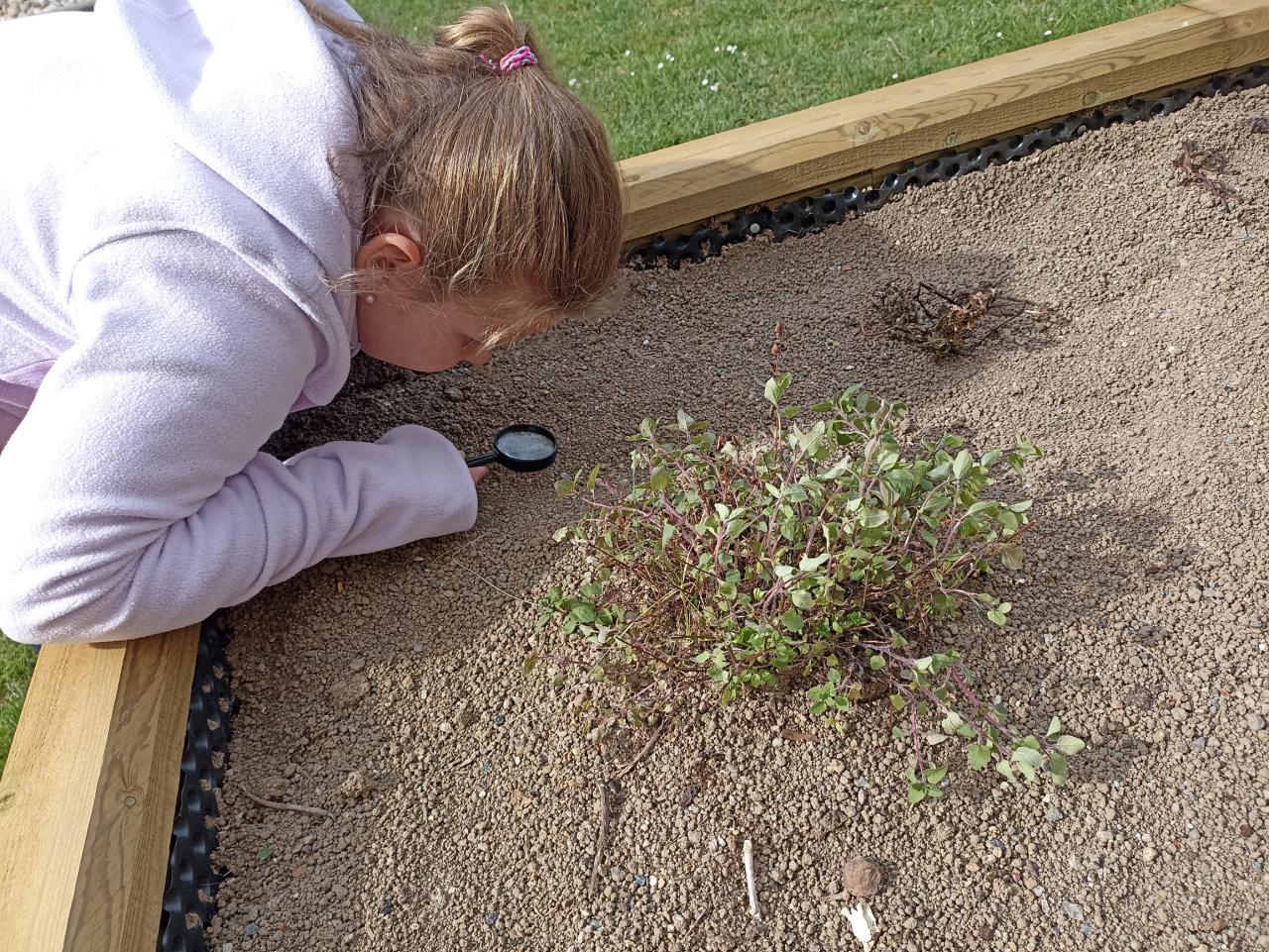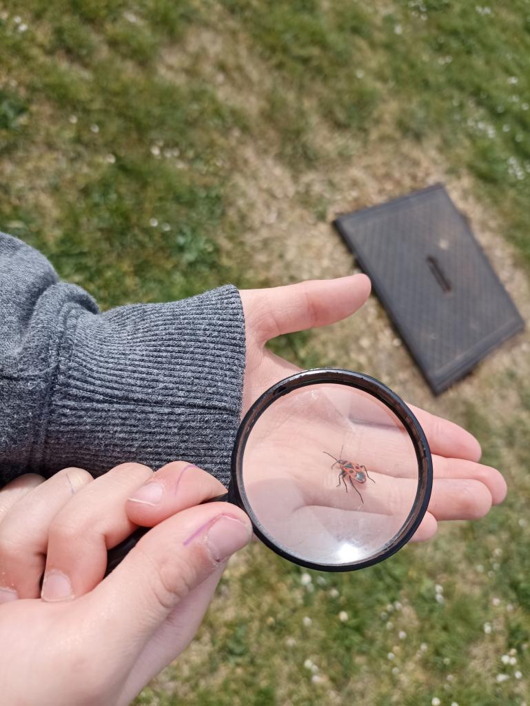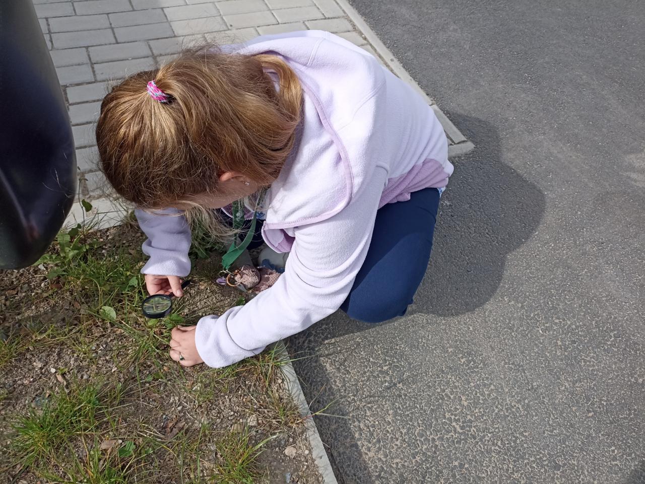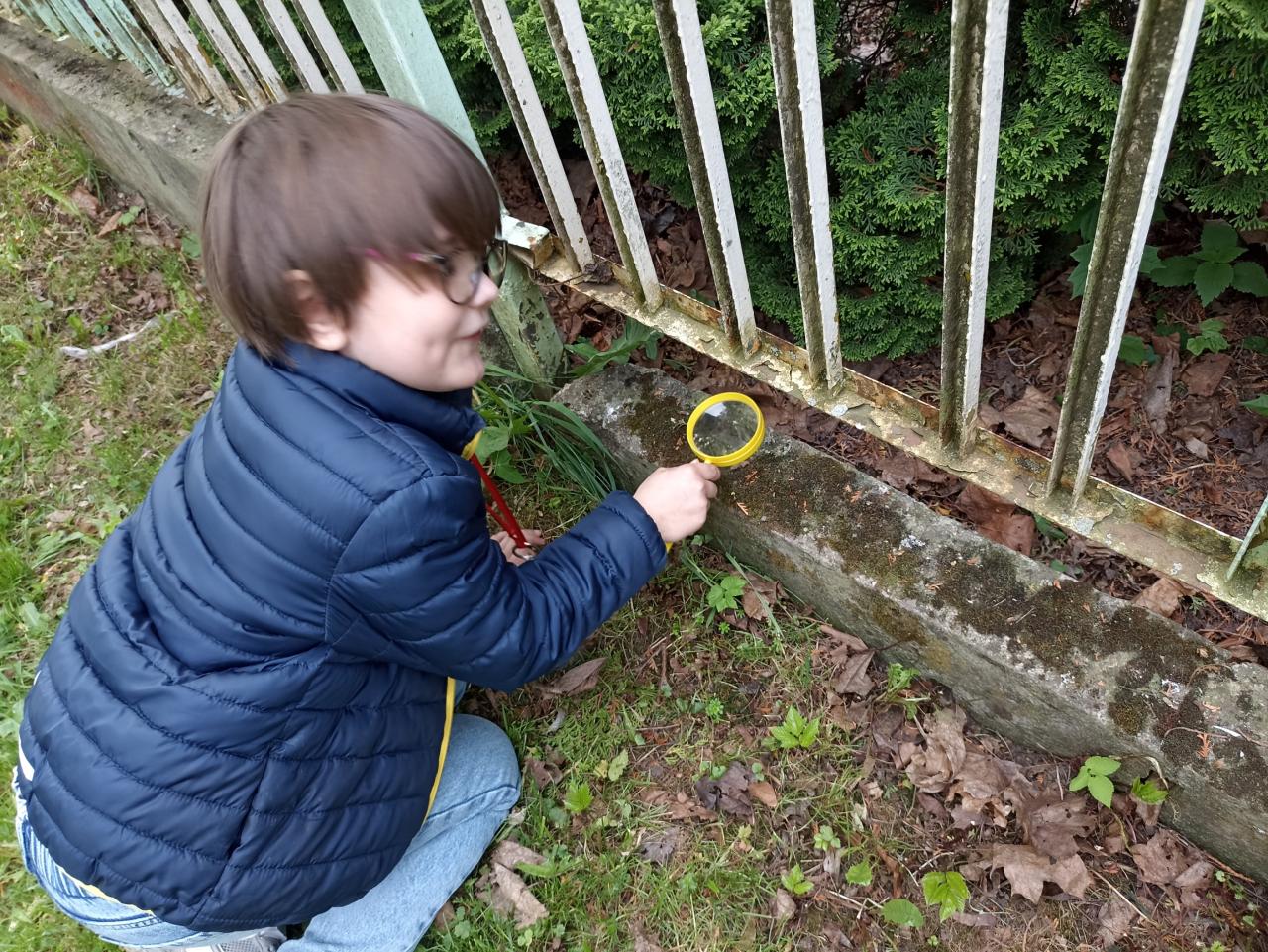 Jarní počasí se nám vrátilo, což jsme hned využili a vrhli se na zkoumání školního pozemku pomocí lupy. Všímali jsme si rostlin i živočichů a na základě toho jsme pracovali na výtvarné práci Co se děje v trávě...