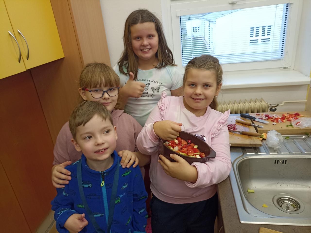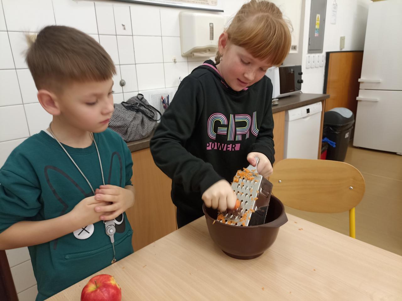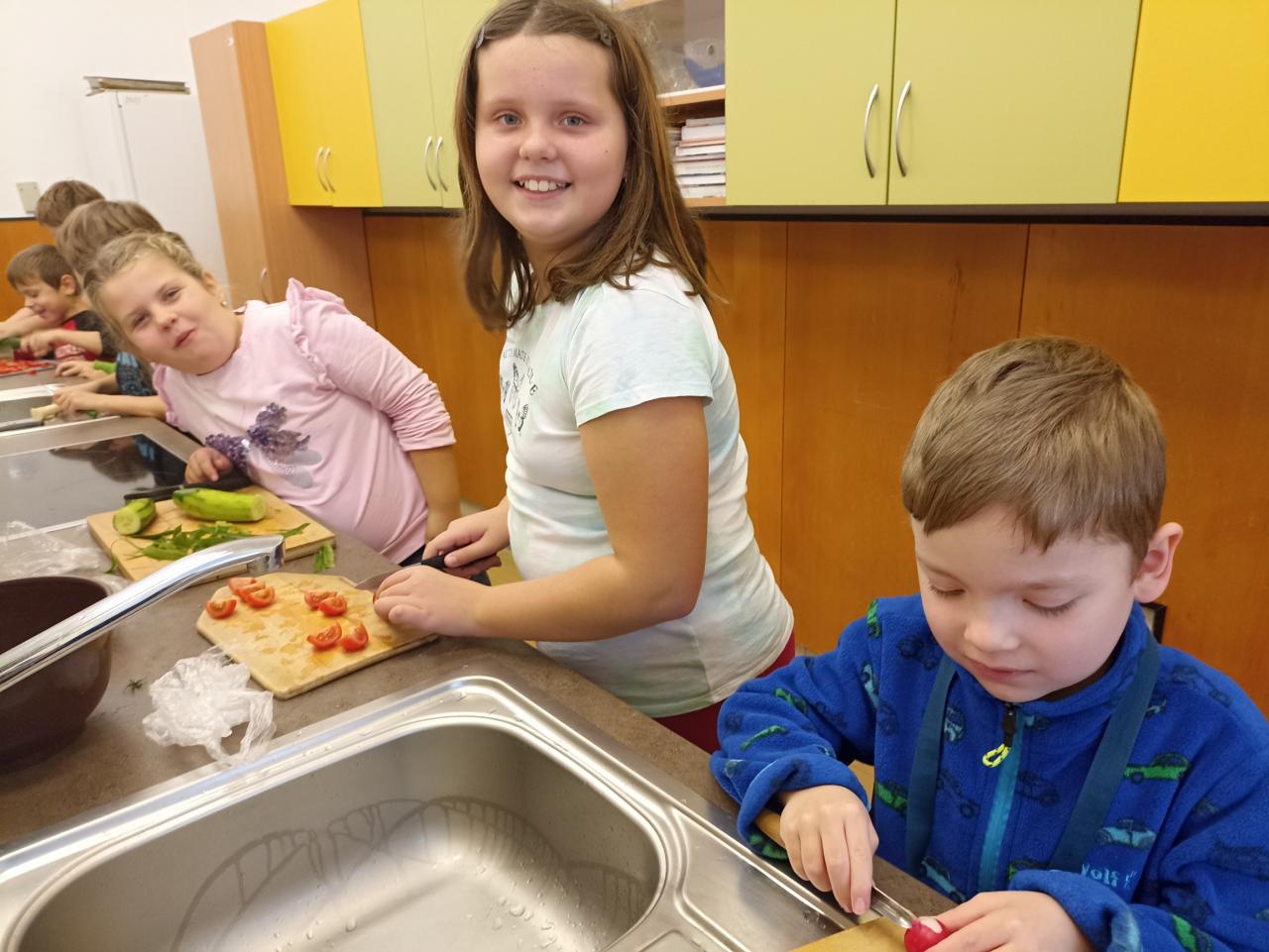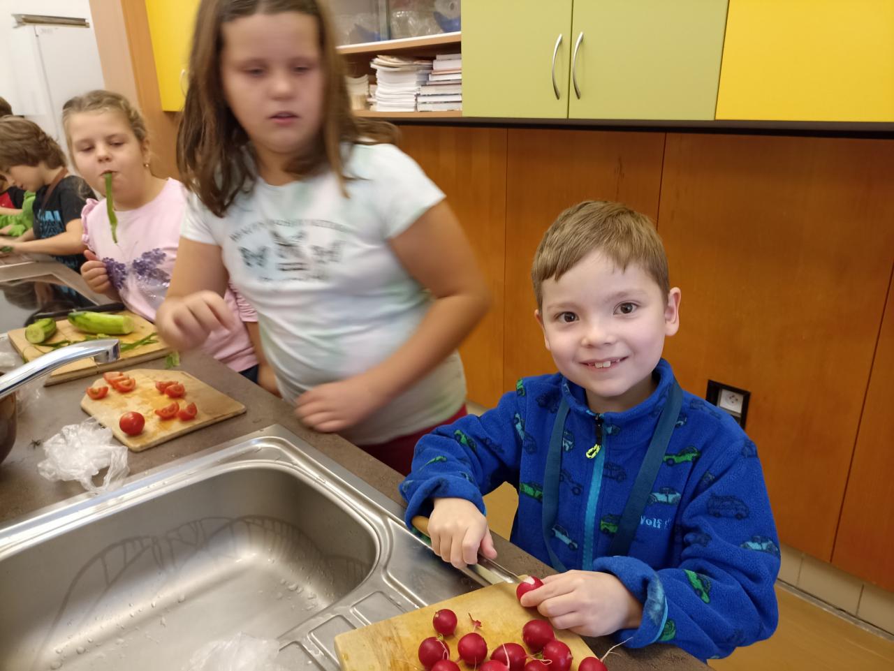 Co znamená, že se v prvouce učíme o ovoci a zelenině? Že se s ní musíme seznámit tváří v tvář a vyrobit si z ní salát. Podle druhu jsme se rozdělili do skupinek a vyrobili salát šopský, mrkvový s jablky i ovocné. Všechny byly výborné...