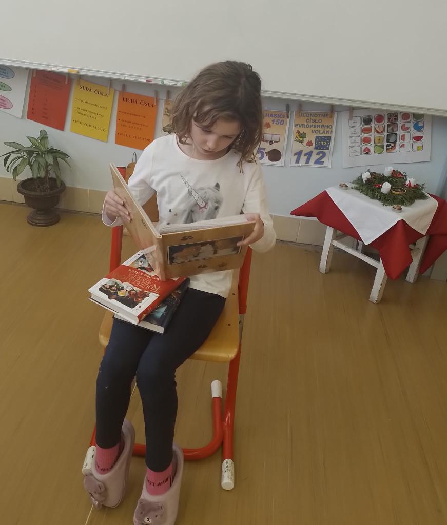 V období adventních dnů proběhl ve třídě další čtenářský den, spojený s představováním, prezentací a ukázkou zajímavých knížek a různých literárních žánrů.
