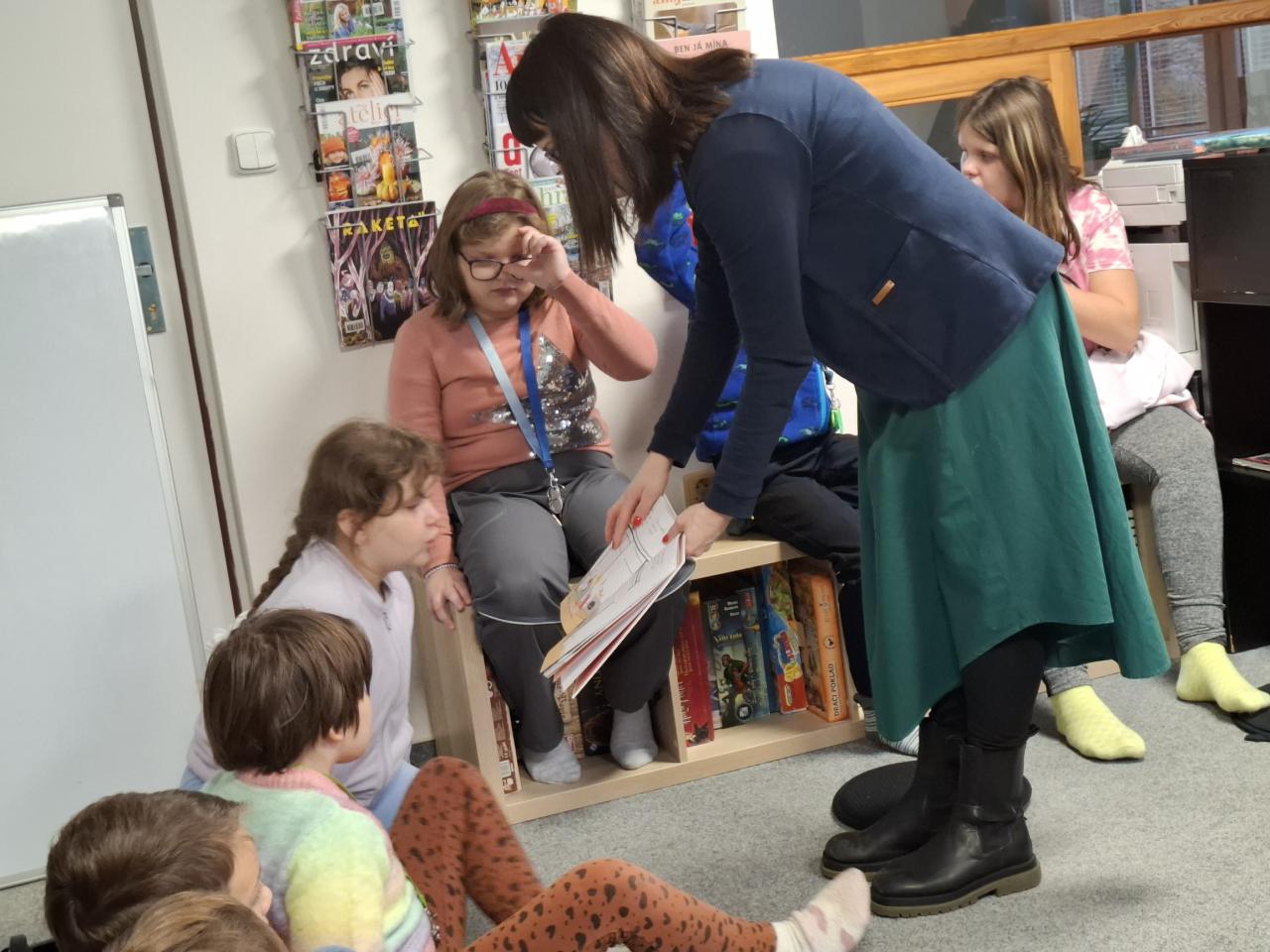Naše spolupráce s knihovnou je pravidelná. I v tomto pololetí jsme se sem vydali, abychom se dozvěděli, co je tu nového. Paní knihovnice nás seznámila s knihou SuperMáňa a velká psí láska. Vyzkoušeli jsme si předvídání, seznámili s prvky komiksu a předvedli, jak umíme číst. Děkujeme.