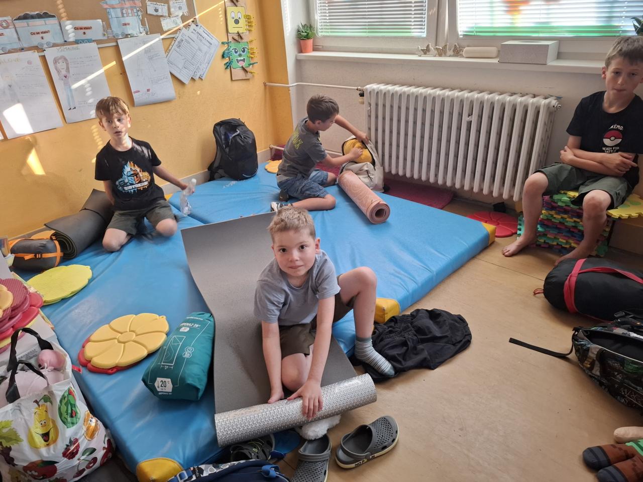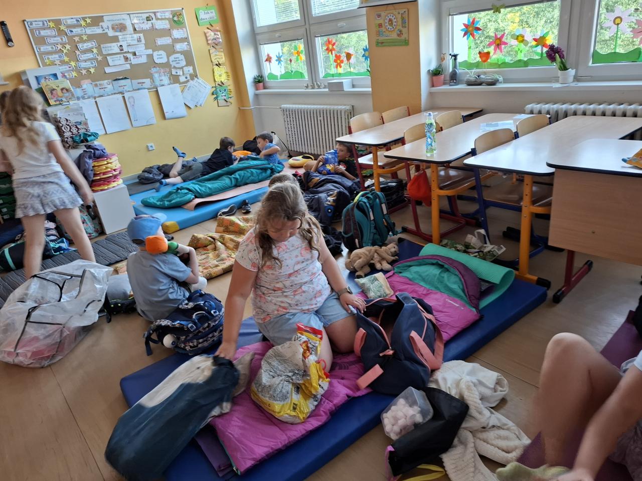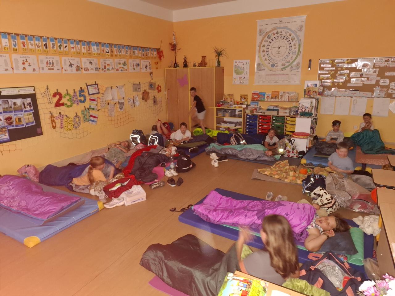 Ve škole jsme tak rádi, že jsme se rozhodli tu i přenocovat. Užili jsme si společně skvělé chvíle - hráli šipkovanou, opékali buřty, tvořili myšlenkové mapy a pomocí tabletu rozpohybovali auto z Lego Education. Nakonec jsme i usnuli a ráno si dali společnou snídani :-)