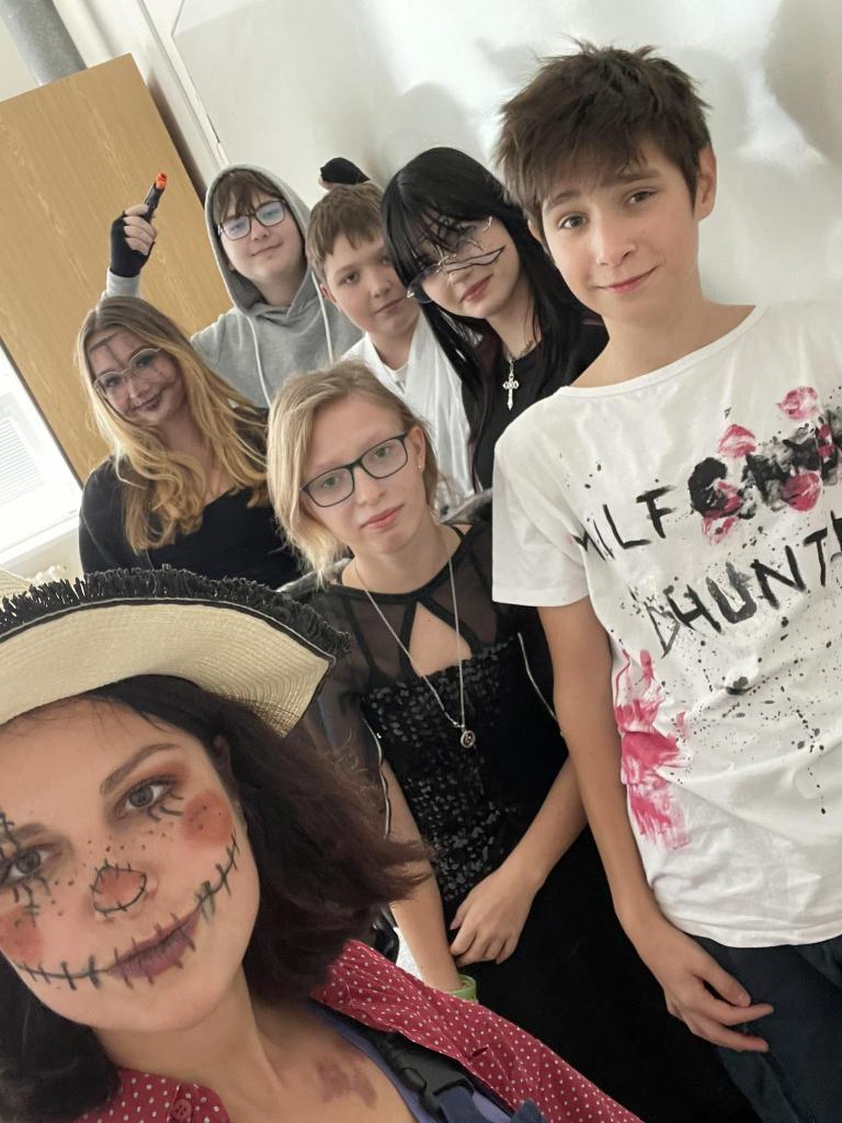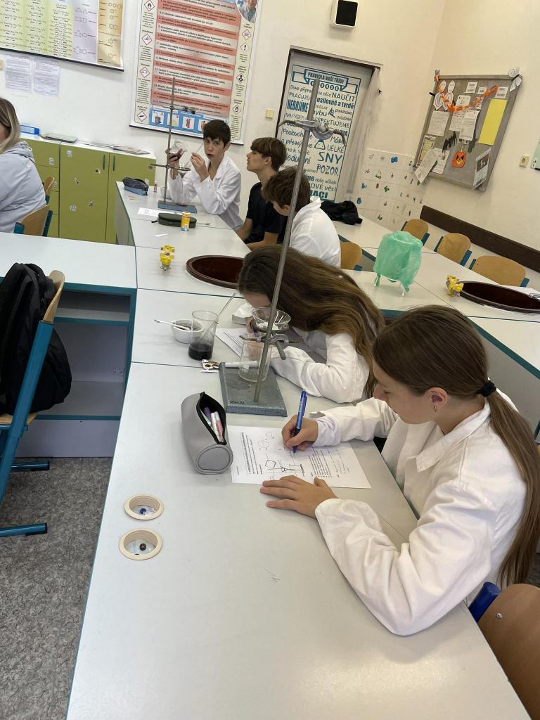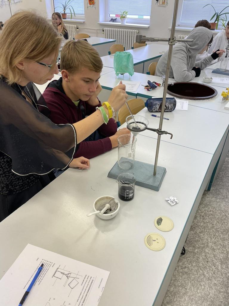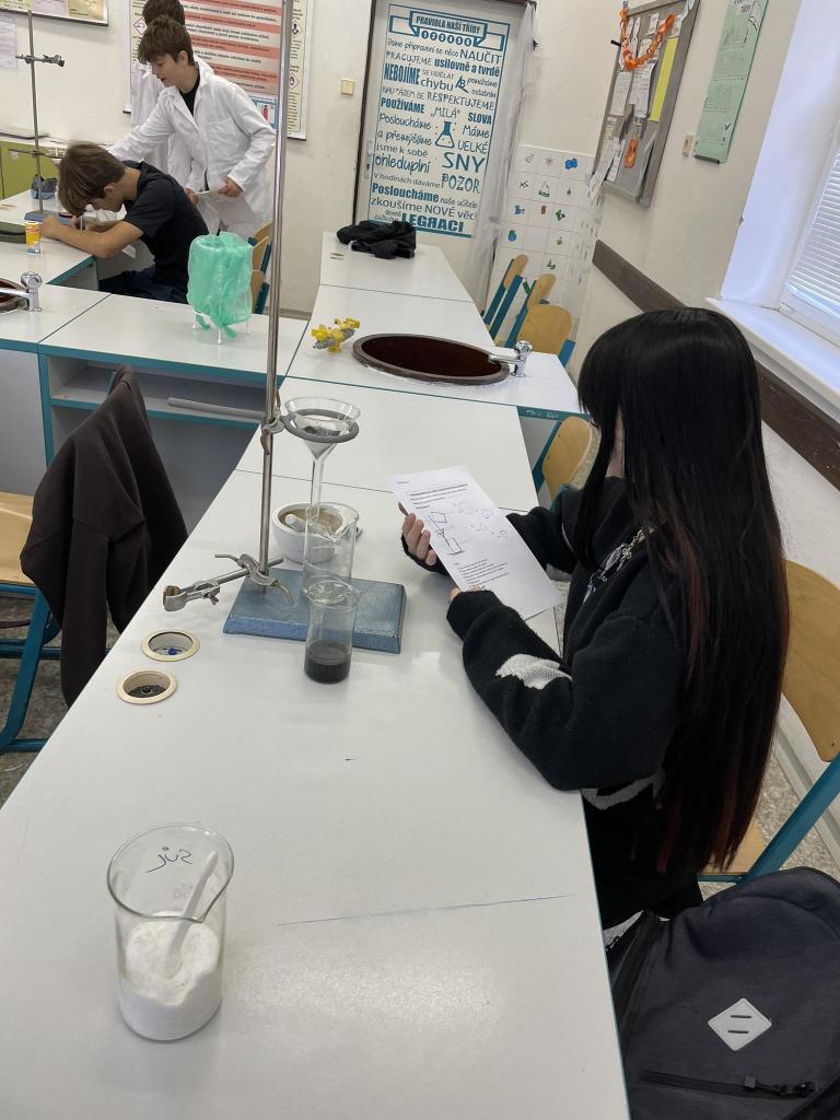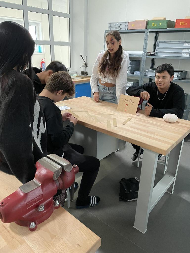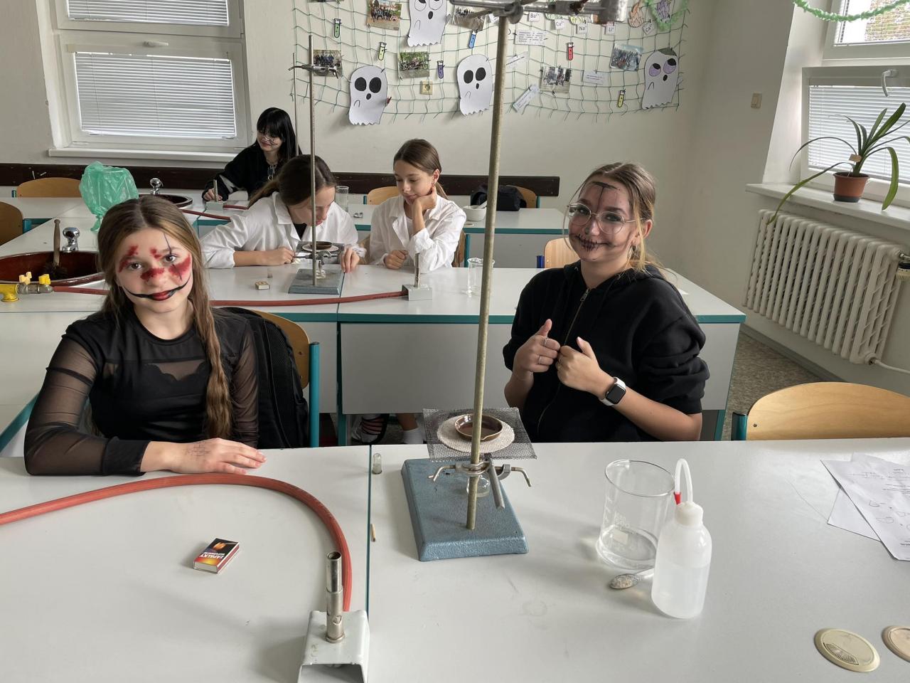 Letos jsme na Halloween vyzkoušeli filtraci černého uhlí se solným roztokem s následným odpařováním. Žáci z 9. B si připravili stanoviště s plněním úkolů, které jsme po týmech plnili. Cílem bylo odemknout poklad, což se podařilo všem.