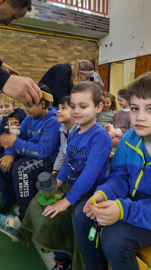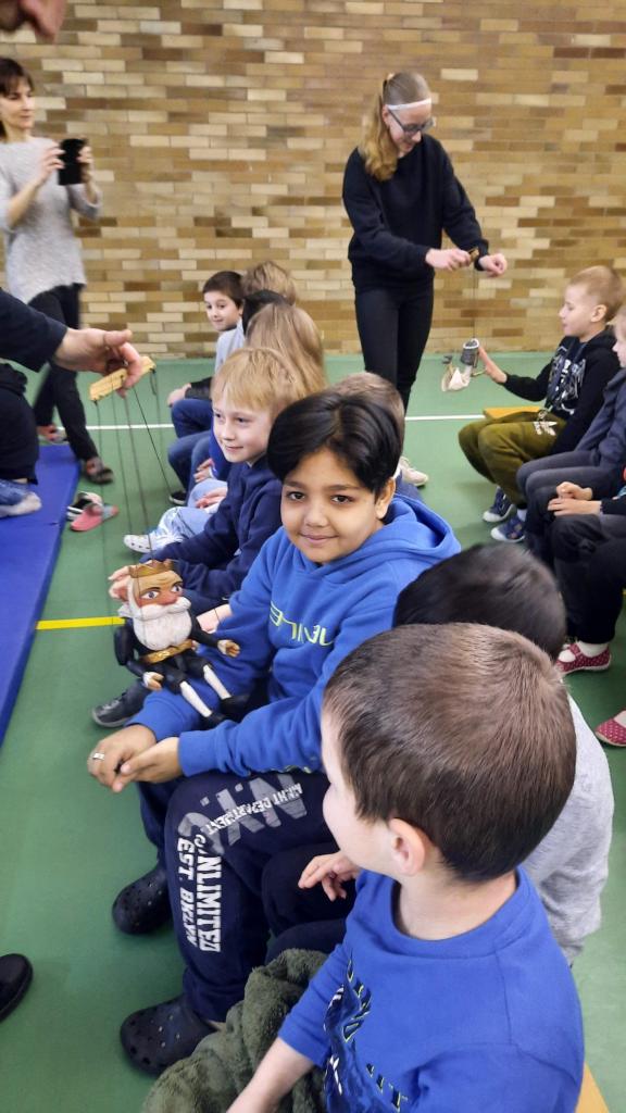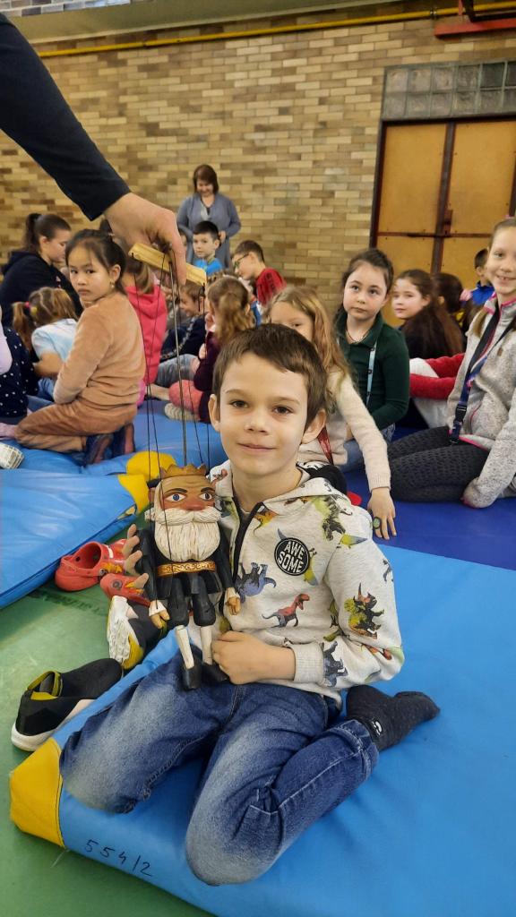 V tělocvičně bylo pro nás připraveno loutkové představení s názvem O čem král doma nevěděl, které nám odehrál divadelní soubor Dr. Tyrš z Čáslavi.