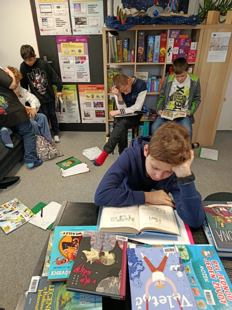 Navštívili jsme místní knihovnu, kde jsme si popovídali o knihách se strašidelnými příběhy. Přírodovědné učivo o vesmíru jsme ukončili návštěvou planetária v Praze. S etopedem panem Převrátilem jsme pokračovali v práci na zlepšení vztahů a chování našeho třídního kolektivu. Před Velikonocemi jsme si pochutnali na vlastnoručně vyrobeném cukroví.