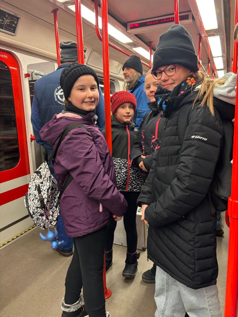 16.prosince jsme vyrazili do Prahy. Bohužel, porouchal se nám autobus, tak jsme kousek cesty museli jet městským autobusem a metrem. V centru Prahy jsme navštívili kostel Panny Marie Sněžné a vyhlídku v horním patře obchodního domu Máj. Potom už nás čekal hlavní program dne nazvaný Back in time.