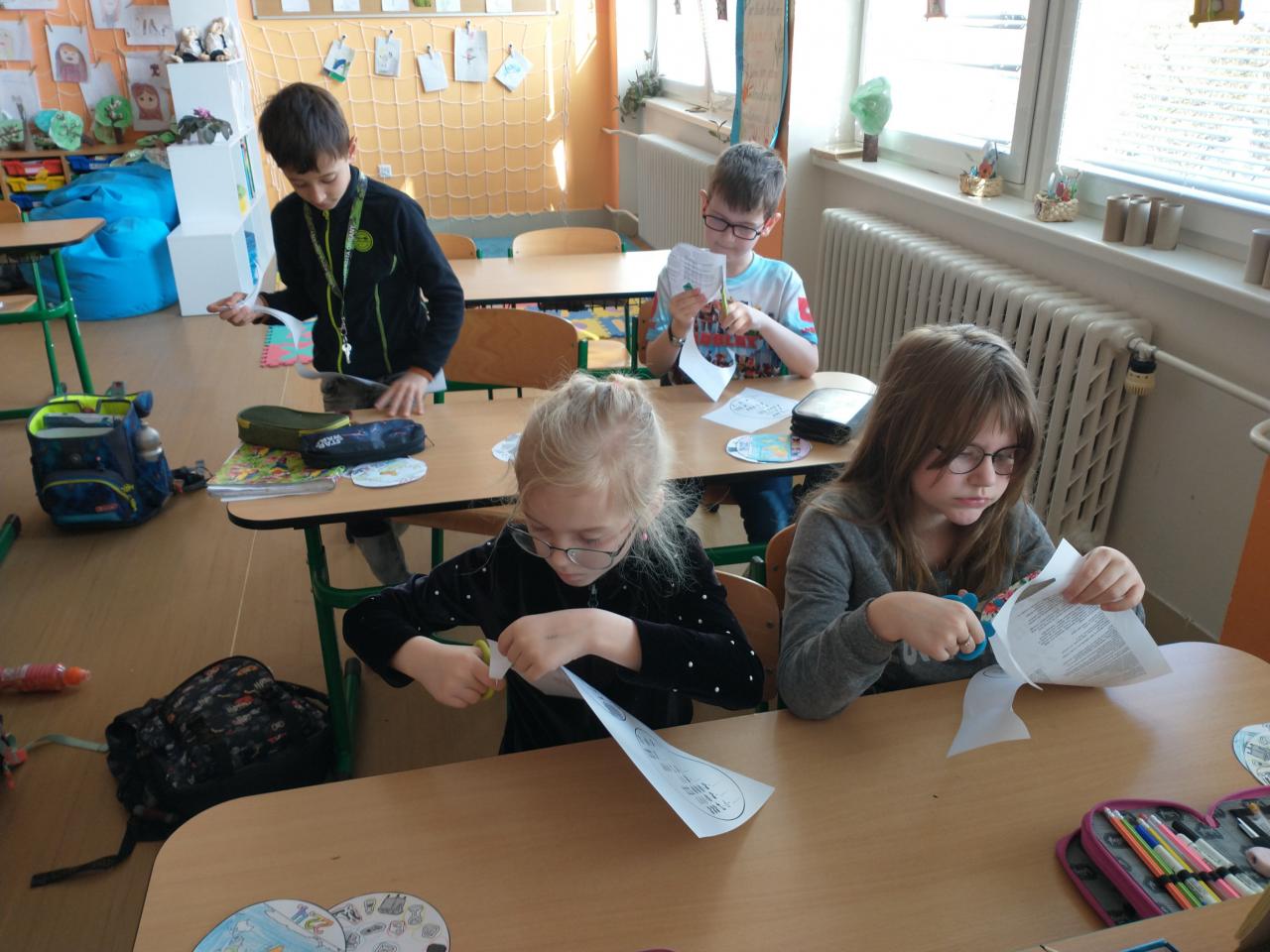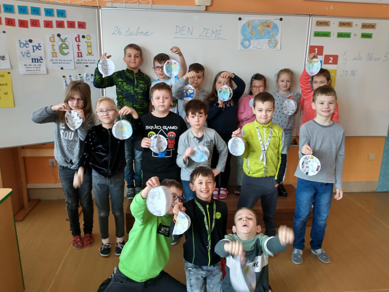 Připomněli jsme si, jak je důležité chránit naši planetu, povídali jsme si, tvořili, vyráběli hady (protože: "Na svatého Jiří vylézají hadi a štíři."), odvážlivci zkusili "bosý chodníček" a pak jsme si všichni užili poslední hodinu venku na čerstvém vzduchu.