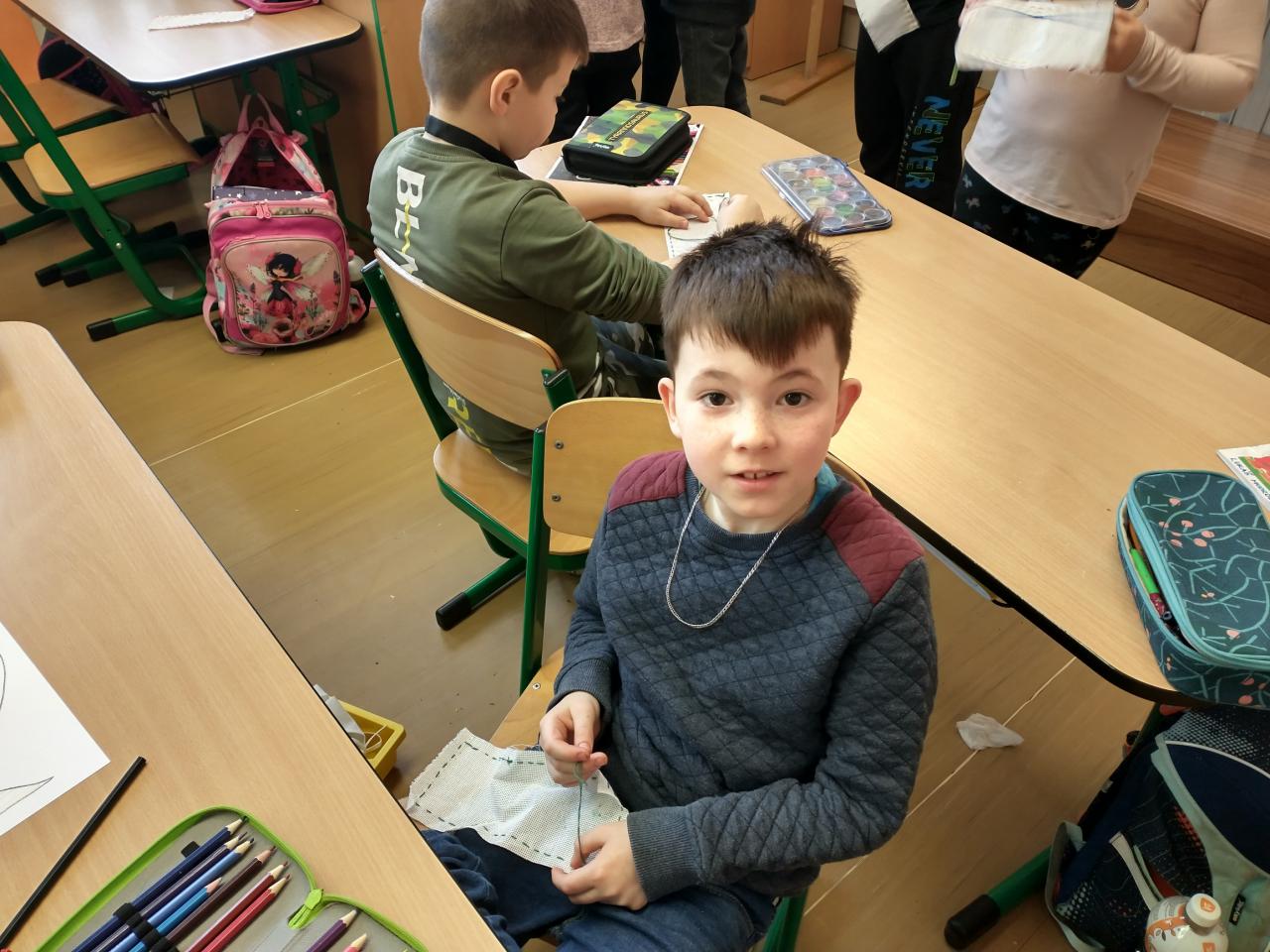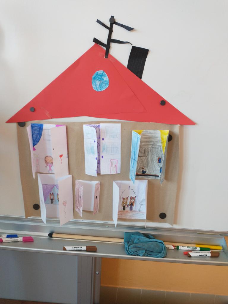 Škola to není jen čtení, psaní a počítání. Z nás se o pracovní činnosti staly švadlenky. O výtvarné výchově jsme si nakreslili svůj autoportrét a doplnili ho obrázkem budoucího povolání. A protože jsme v prvouce kromě povolání probírali také téma domov, společně jsme si ho vyrobili.
