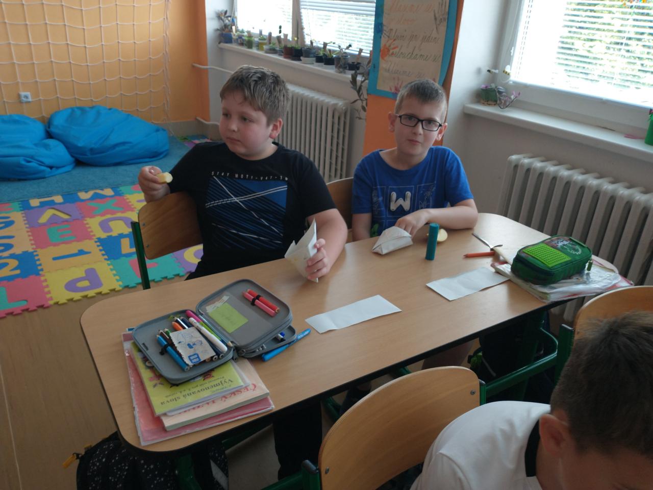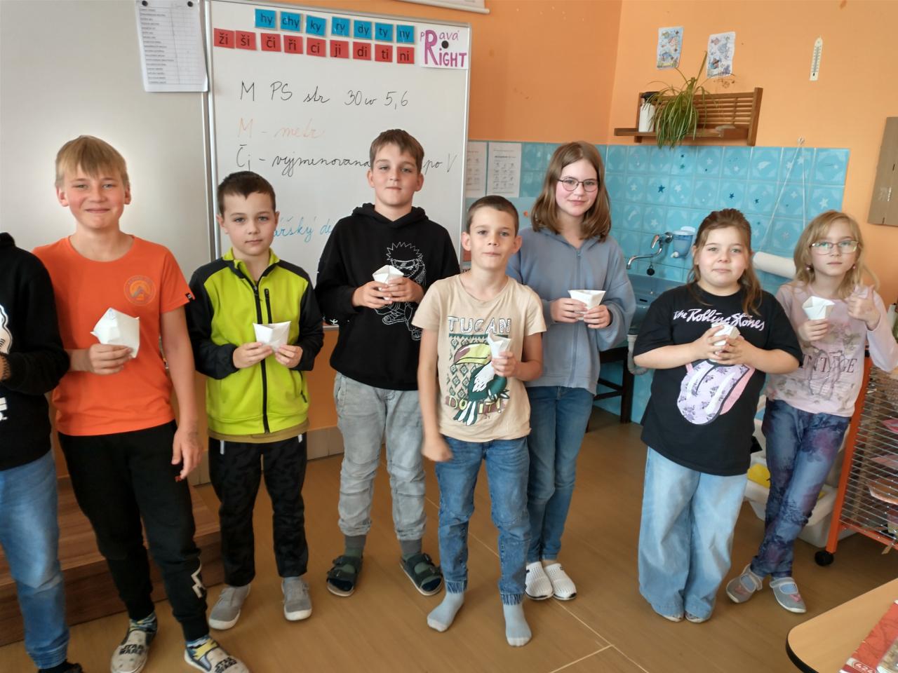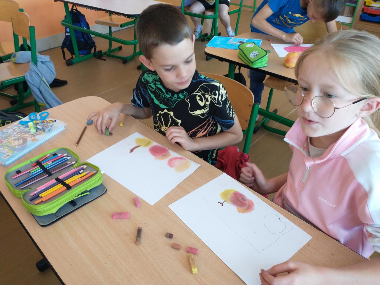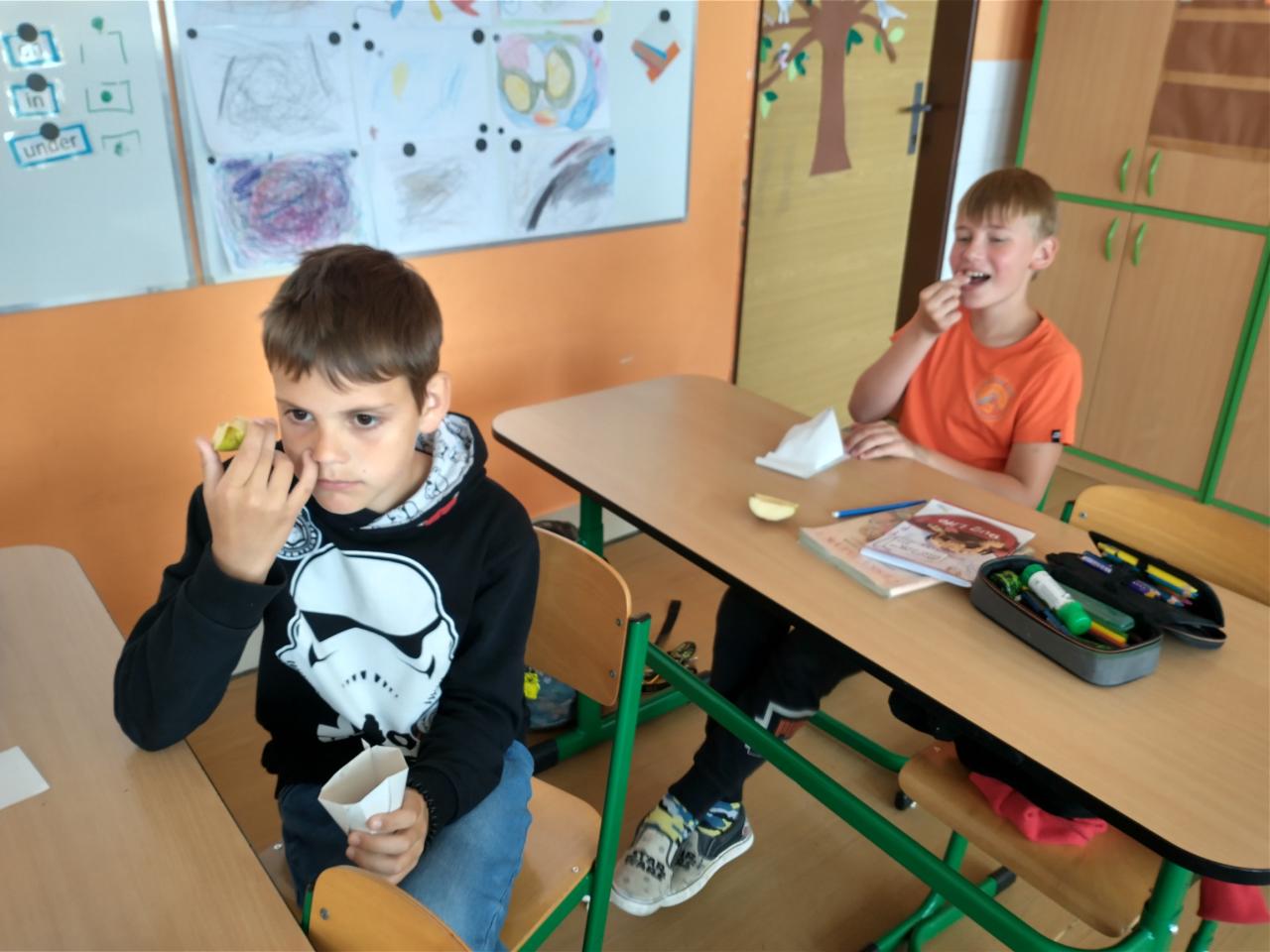 Letošní ochutnávku ovoce jsme propojili s výtvarnou výchovou. Na semínka granátového jablka jsme si složili kelímek. Zhodnotili jsme, který druh jablka získává v naší třídě nejvíc hlasů. A nakonec jsme si tu ovocnou dobrotu namalovali. Školní projekt Ovoce, mléko a zelenina do škol s Bovýskem-mňam.