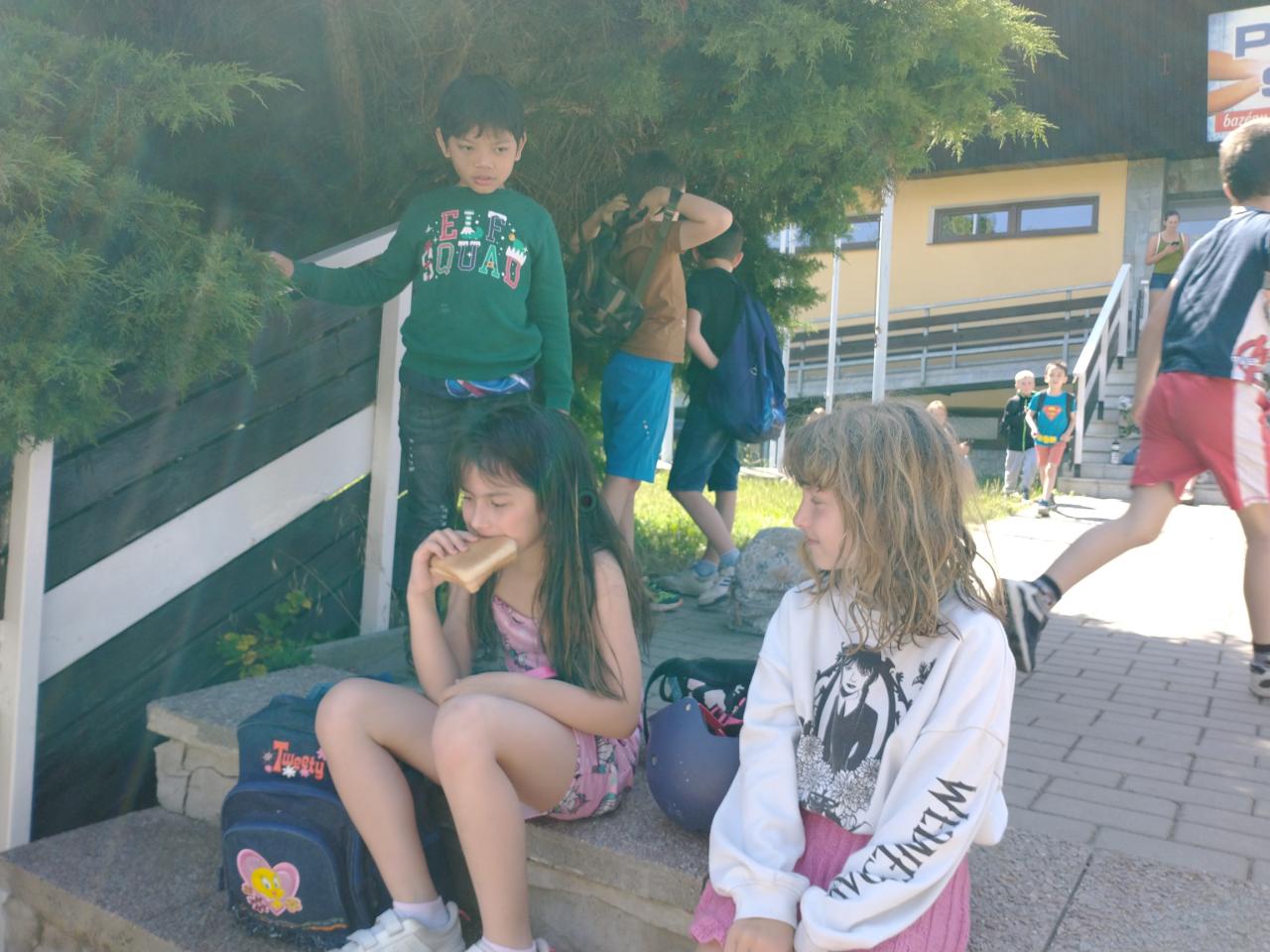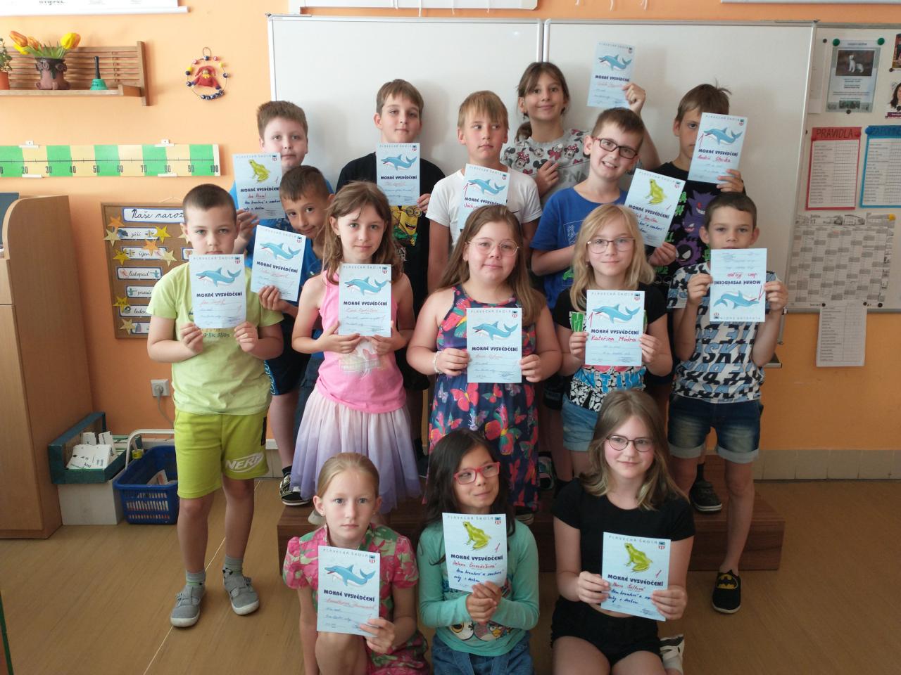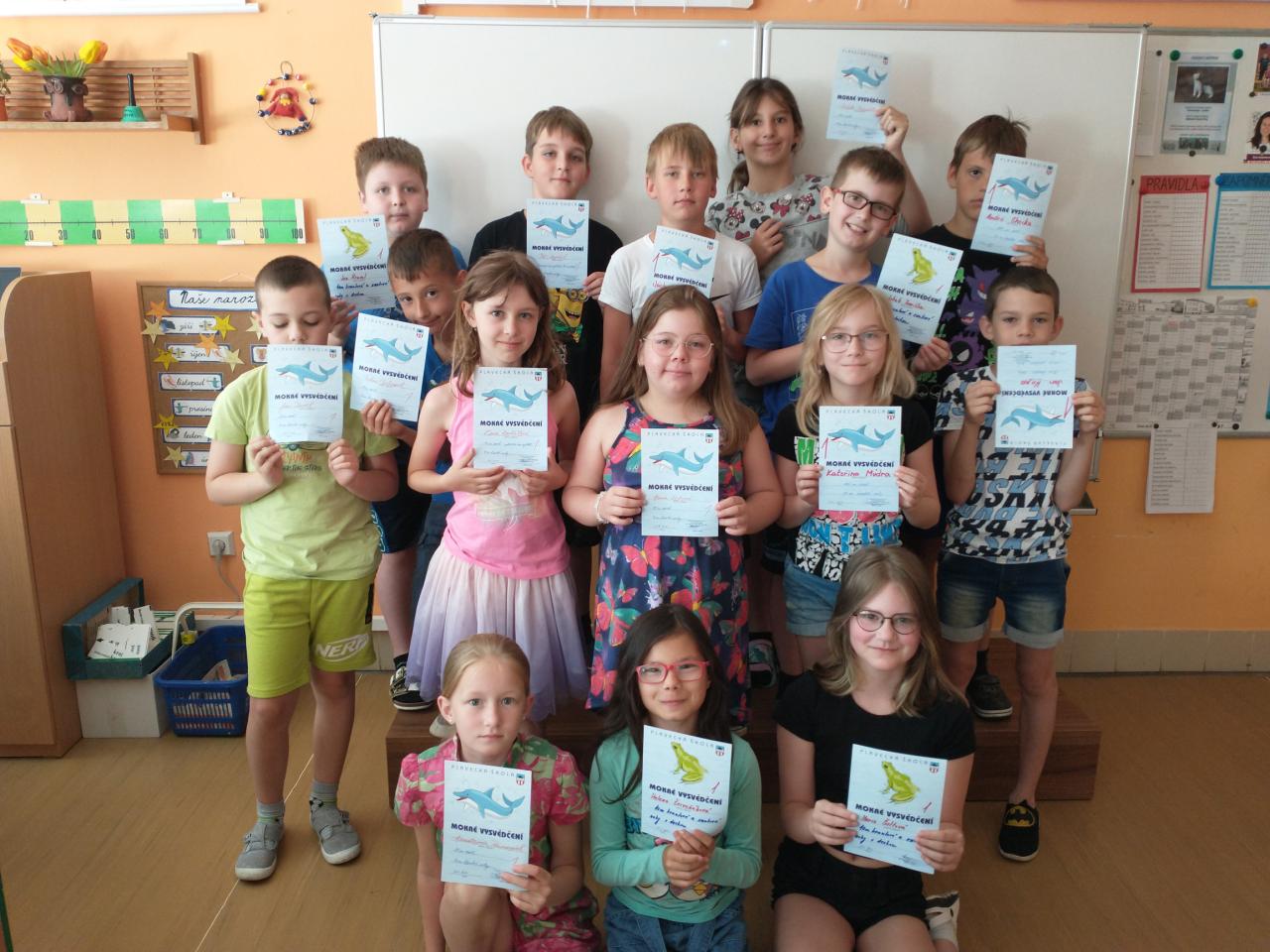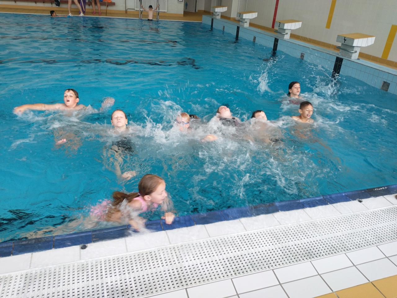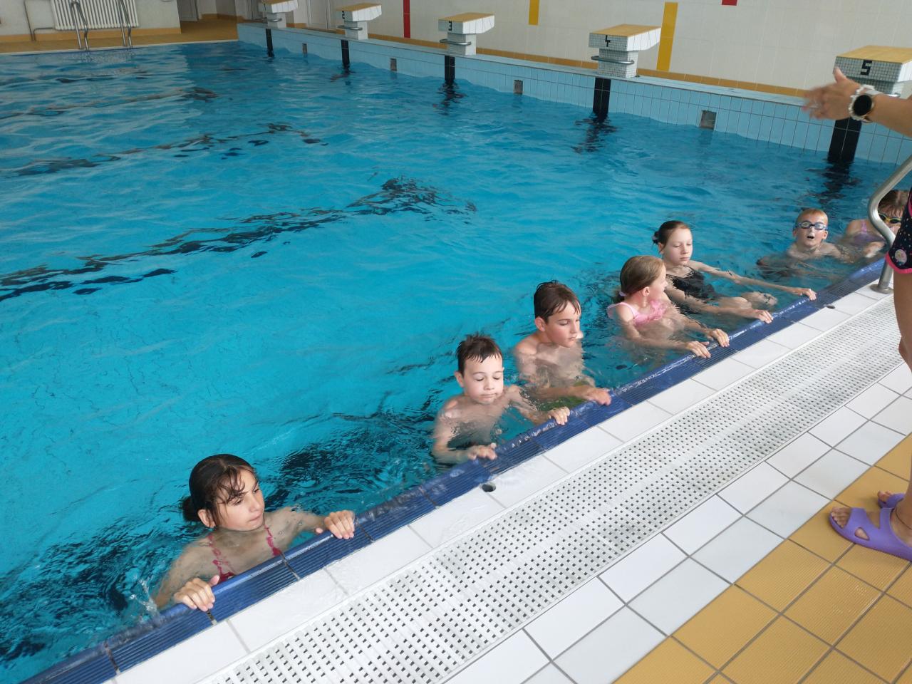Poslední plavání se konaly tradiční závody plavců z každé třídy. Mokré vysvědčení jsme si rozdali až dodatečně ve třídě, aby nebylo opravdově mokré.