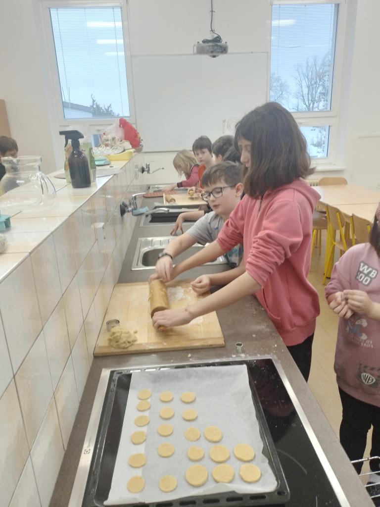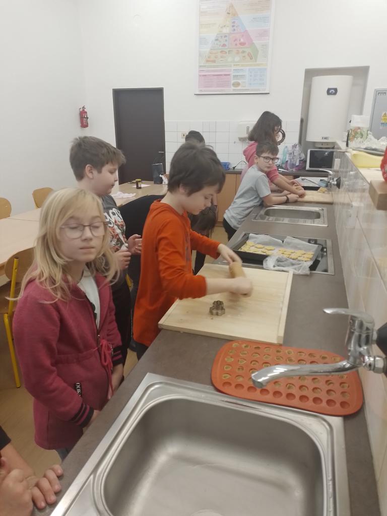 Společně jsme si napekli cukroví, které nám bude zdobit stoly poslední školní den 20. 12. Už se těšíme na "Vánoce ve škole"!!!