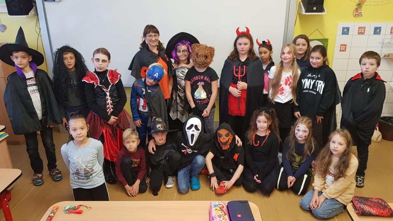V pondělí 31.10. se v naší škole procházely tajemné postavy a záhadné masky zakrývaly naše obličeje. Prožili jsme společně Halloween. Vyprávěli jsme si o Dušičkách a připomněli si tyto dny. Plnili jsme úkoly k zamyšlení, tvořili a učili se pracovat ve skupinách.