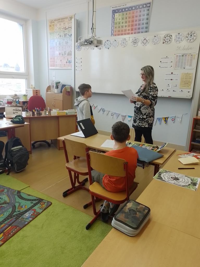 Dnešní den byl pro všechny výjmečný. Děti dostaly vysvědčení, byly ohodnoceny za svou práci v I. pololetí, těm nejvzornějším byla udělena pochvala. Každý si dnes více uvědomil své silné a slabé stránky, v čem se zlepšit, na čem dále pracovat..... Dnes jsme se učili, ale stihli jsme i pohádku. Společně jsme také probrali pravidla chování a důsledky jejich porušování.