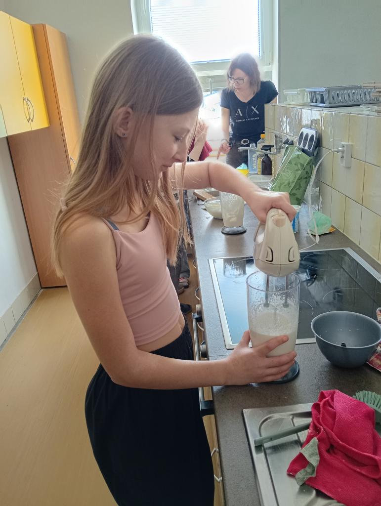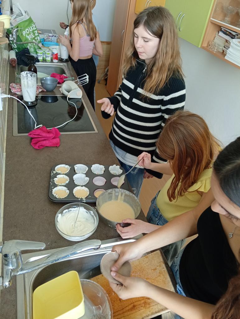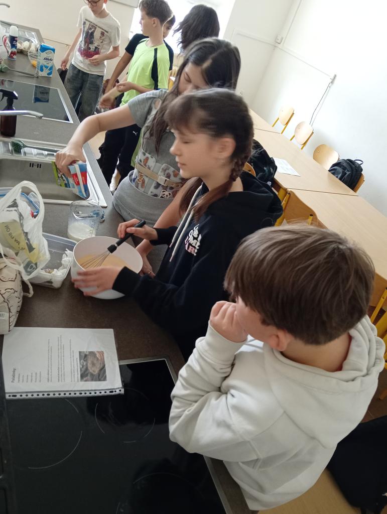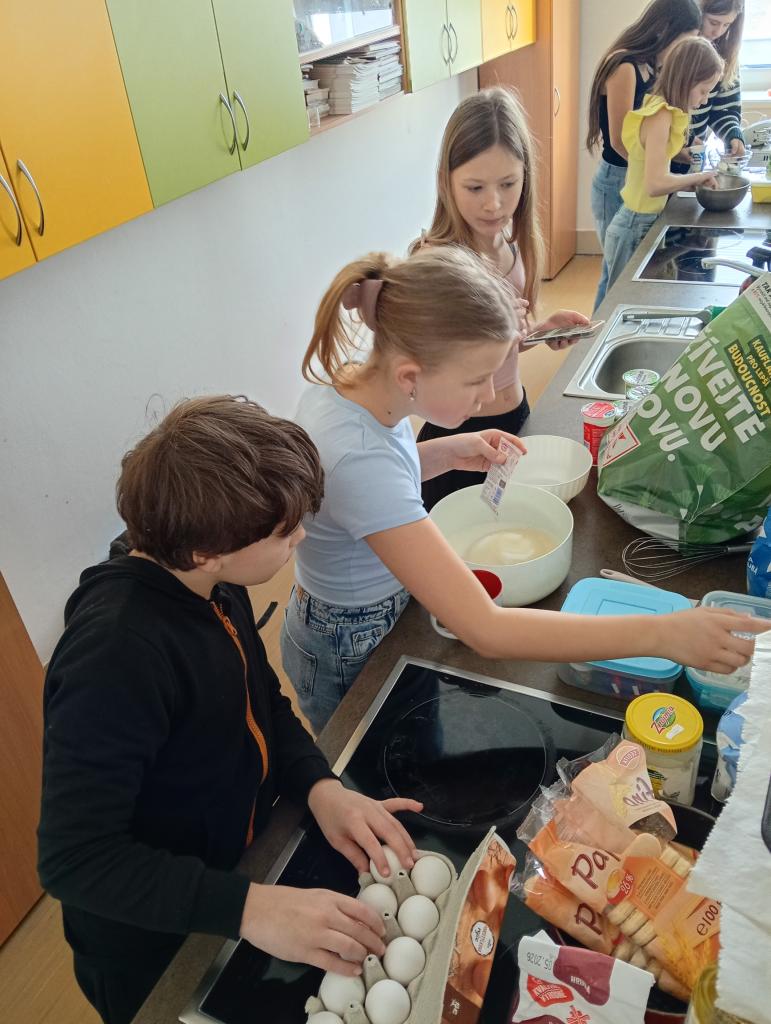 Každá skupinka vařila podle vlastního doneseného receptu. Připravovali jsme palačinky, lívance, cupcaky a také velikonoční dort.