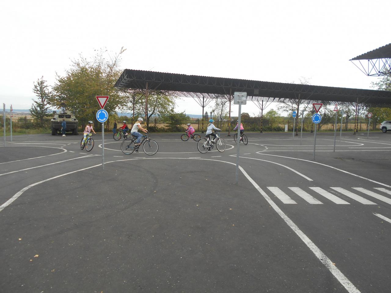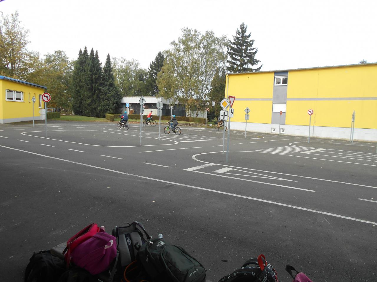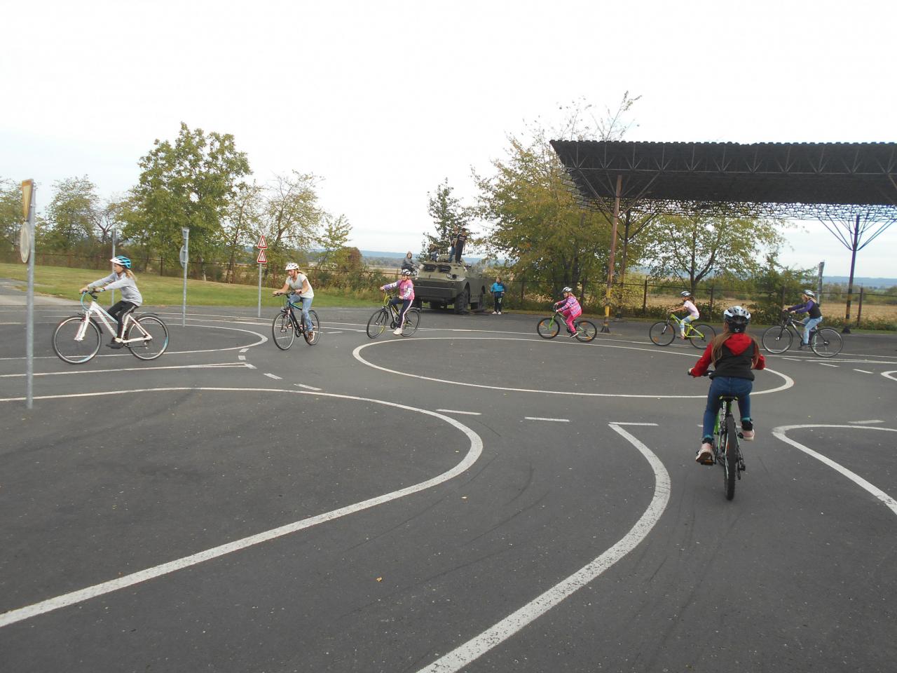 Na dopravním hřišti jsme si vyzkoušeli jízdu na kole v terénu, poznávání dopravních značek a znalost dopravních předpisu.