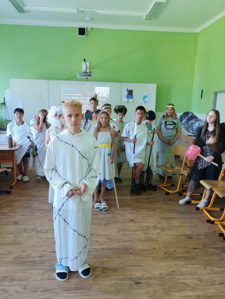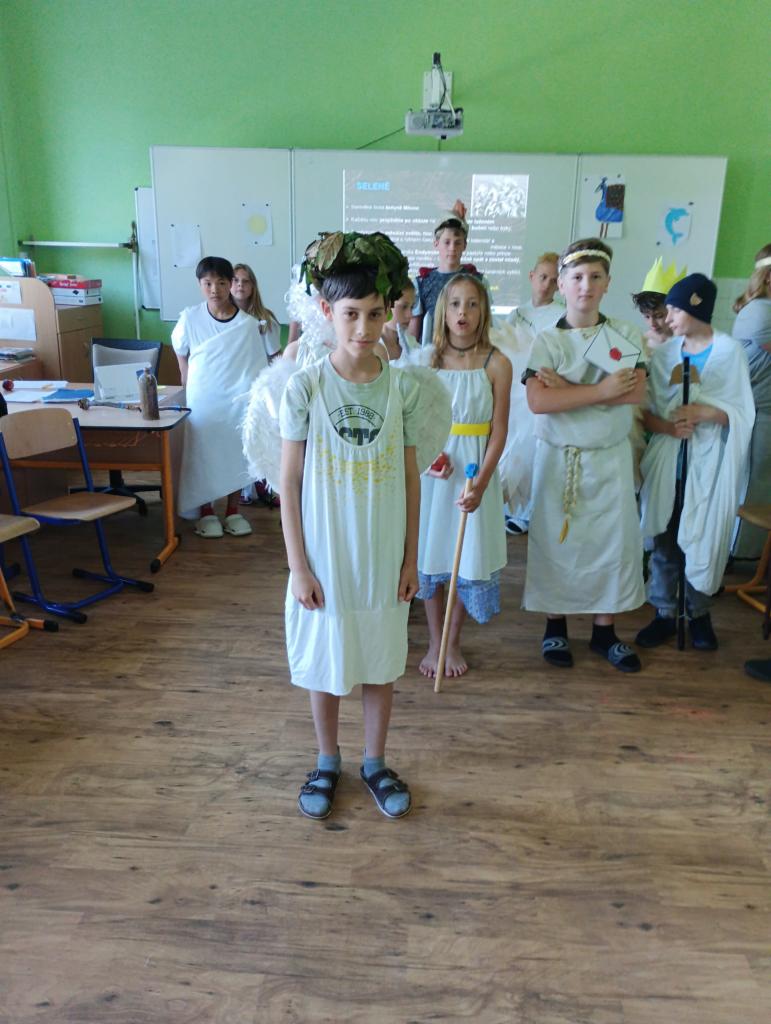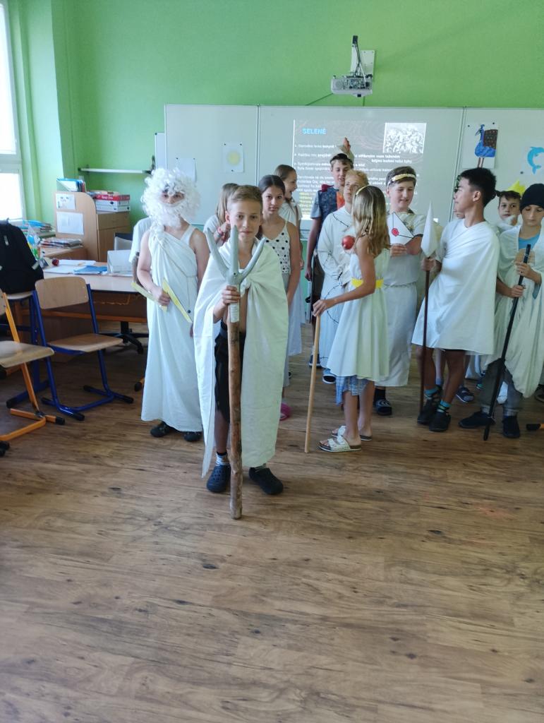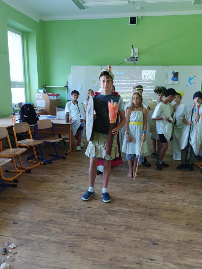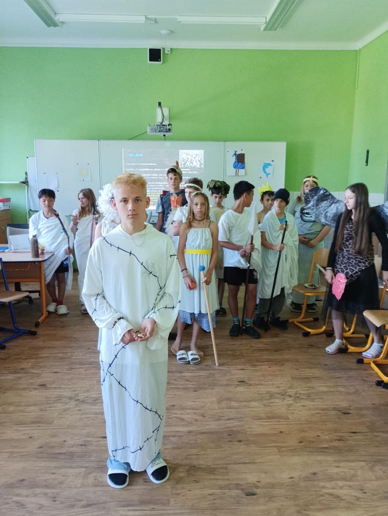 Cílem projektu je prohloubit znalosti žáků o náboženském systému starověkého Řecka. Žáci se seznámí s hlavními postavami řecké mytologie, jejich oblastí působení a hlavními znaky. Výsledkem bude výtvarně zpracovaný plakát představující vybraného boha či bohyni.