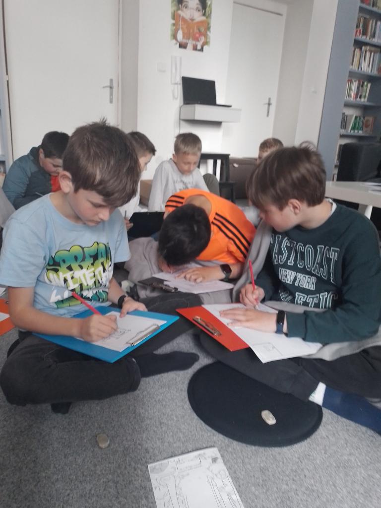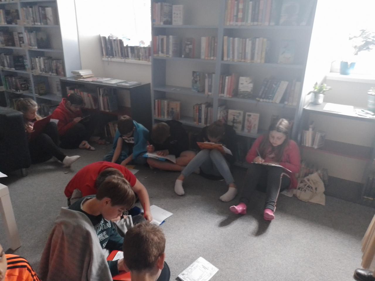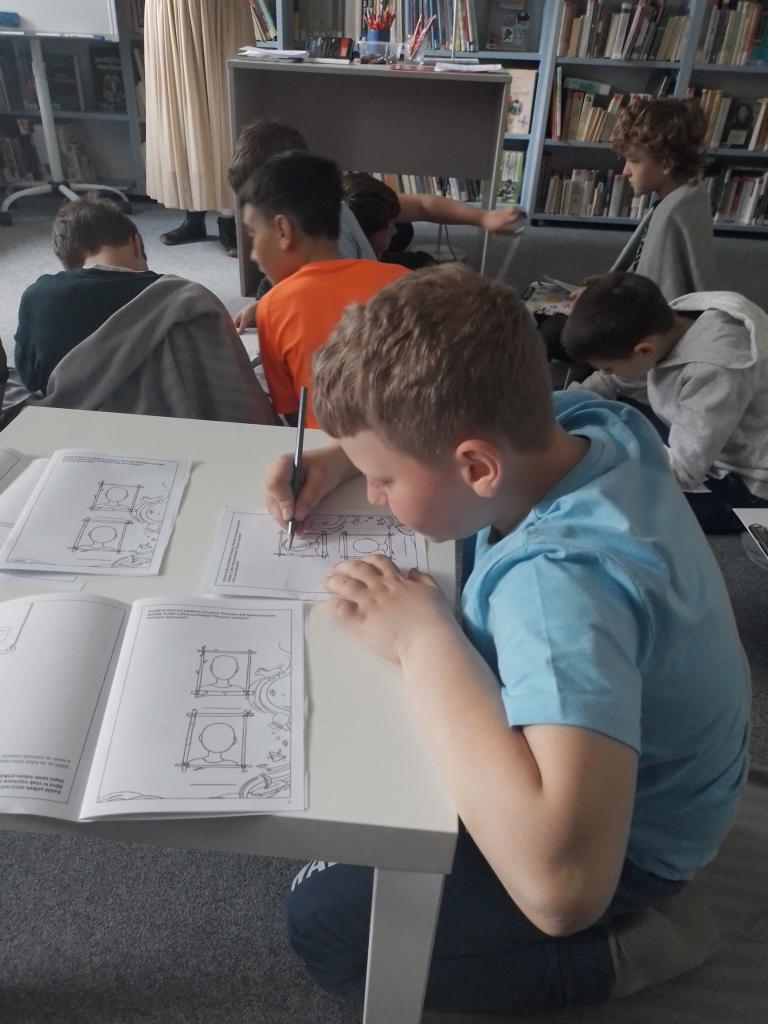 Tentokrát jsme si v knihovně tolik neprohlíželi knížky, ale po poslechu ukázek, nás čekal úkol. Každý si vytvářel svou vlastní knížku. Stali jsme se na chvilku autory, ilustrátory a moc nás to bavilo.