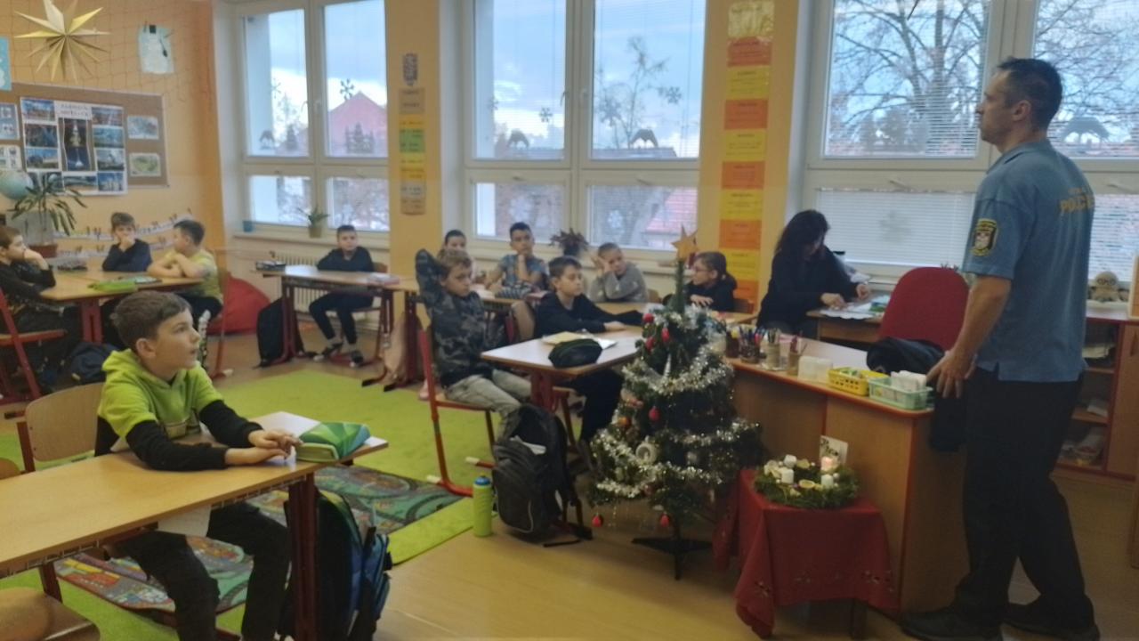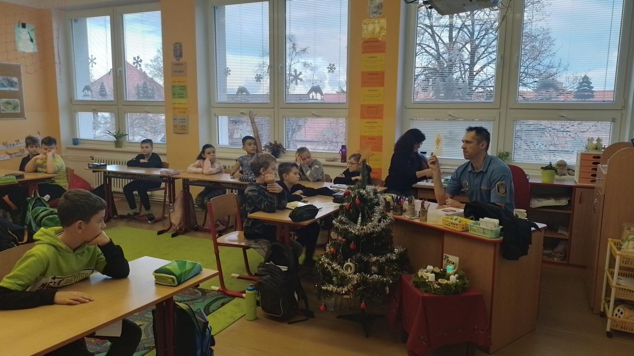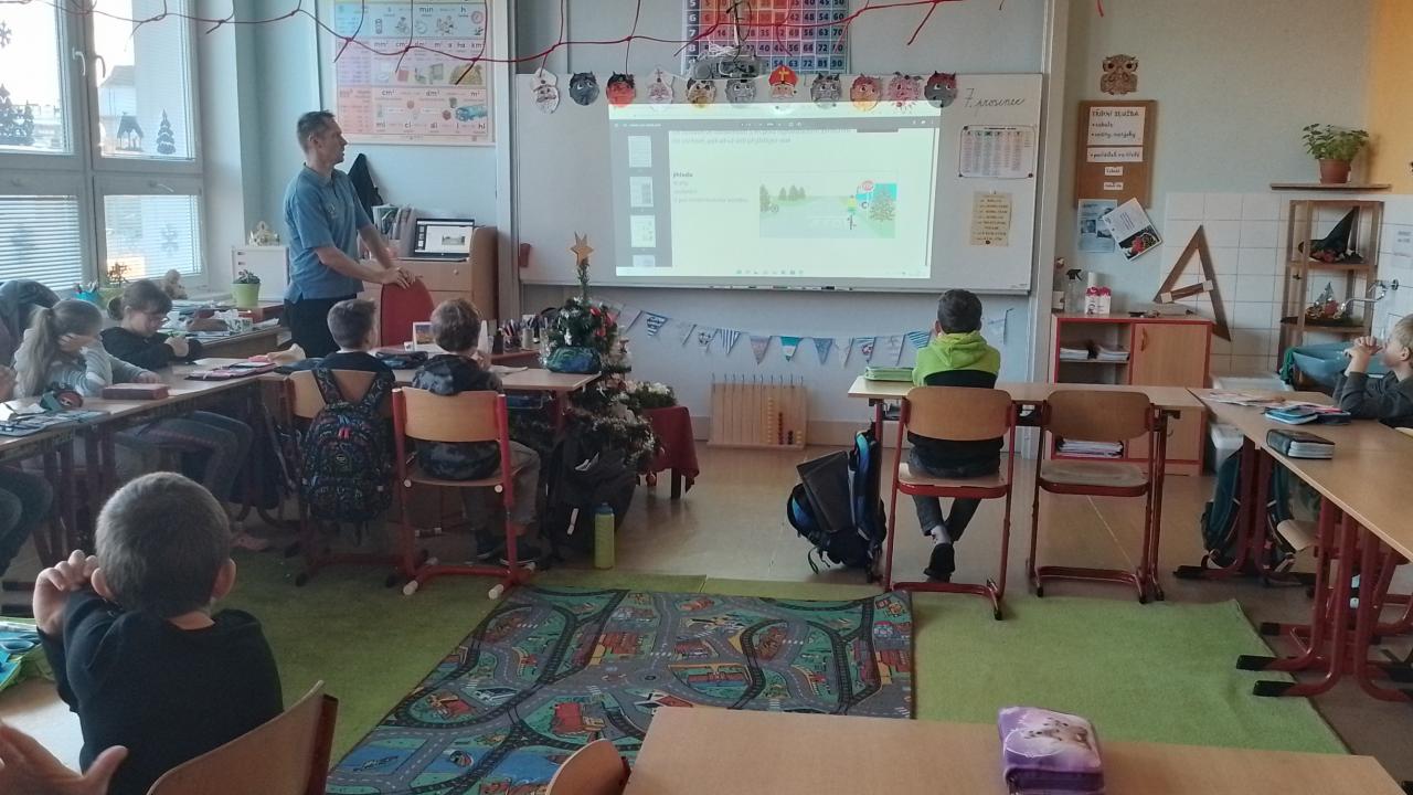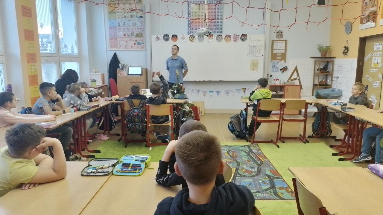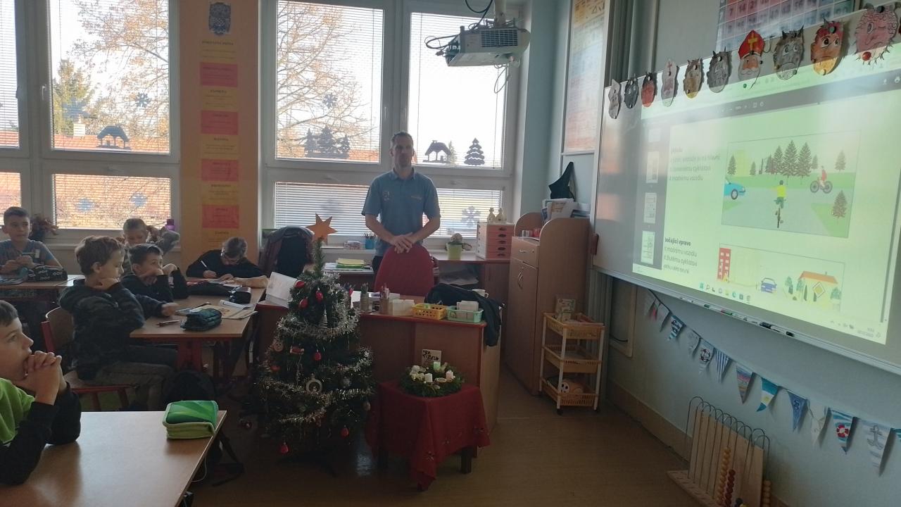 Navštívil nás pan Málek od Městské policie z Čáslavi a probral s námi dopravní předpisy, značky a vše, co bychom měli znát o dopravní výchově. Na jaře nás bude čekat dopravní výchova v praxi.