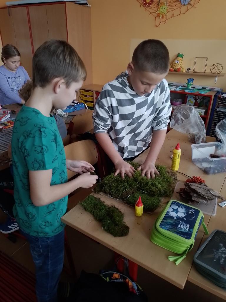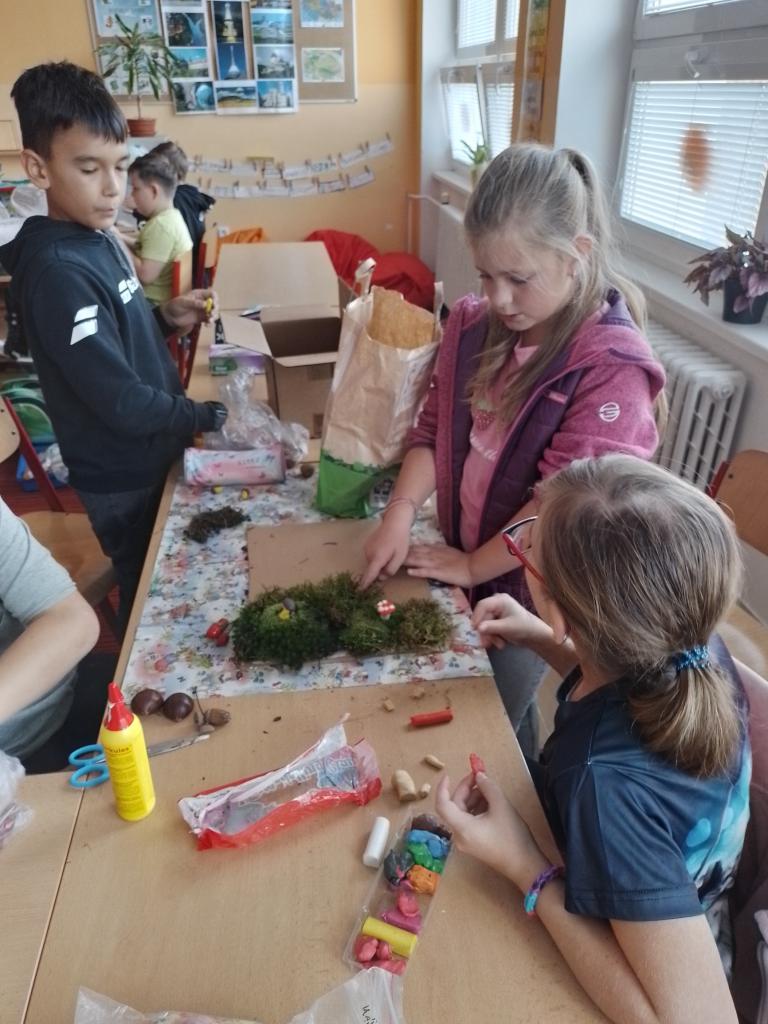 V pátek 21. 10. byl ve škole projektovým dnem, připomněli jsme si, jak jsou pro člověka, společnost i přírodu důležité STROMY. Zhlédli jsme video, malovali stromy a ve skupinkách jsme z přírodnin tvořili model LESA. Nejvíce nás bavilo modelovat houby.