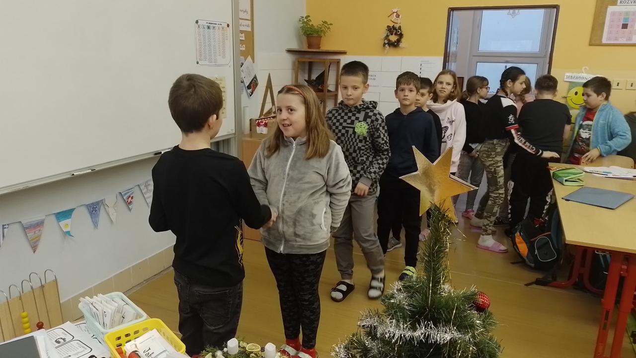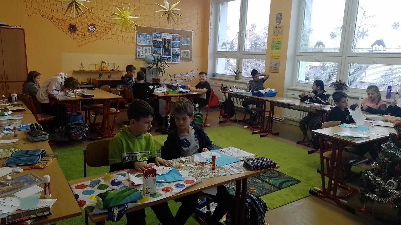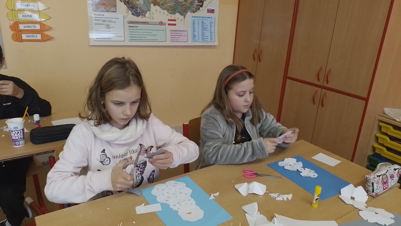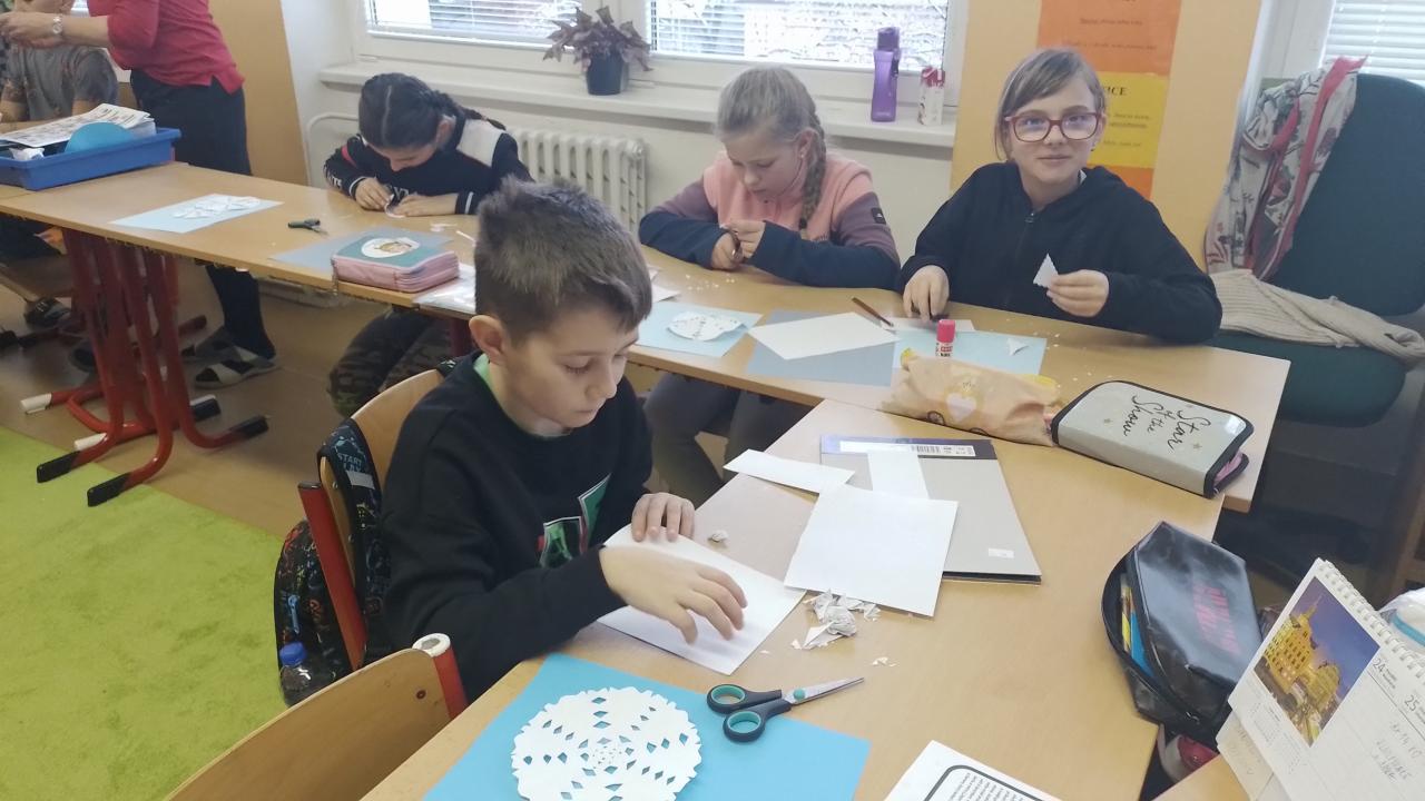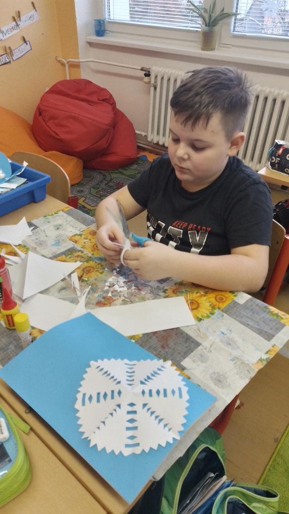 O výtvarce jsme tvořili - vločkového sněhuláka. Vyzdobili jsme si chodbu a třídu zimními motivy. Společně jsme si ozdobili stromeček, který nám spolu s adventním věncem vytváří vánoční atmosféru.