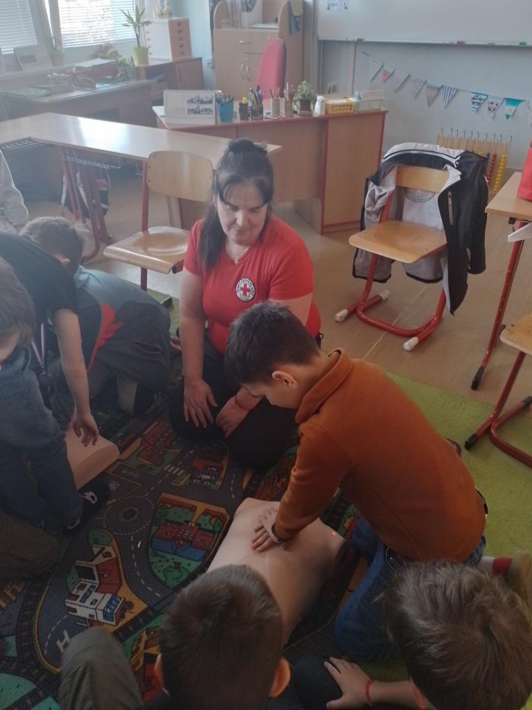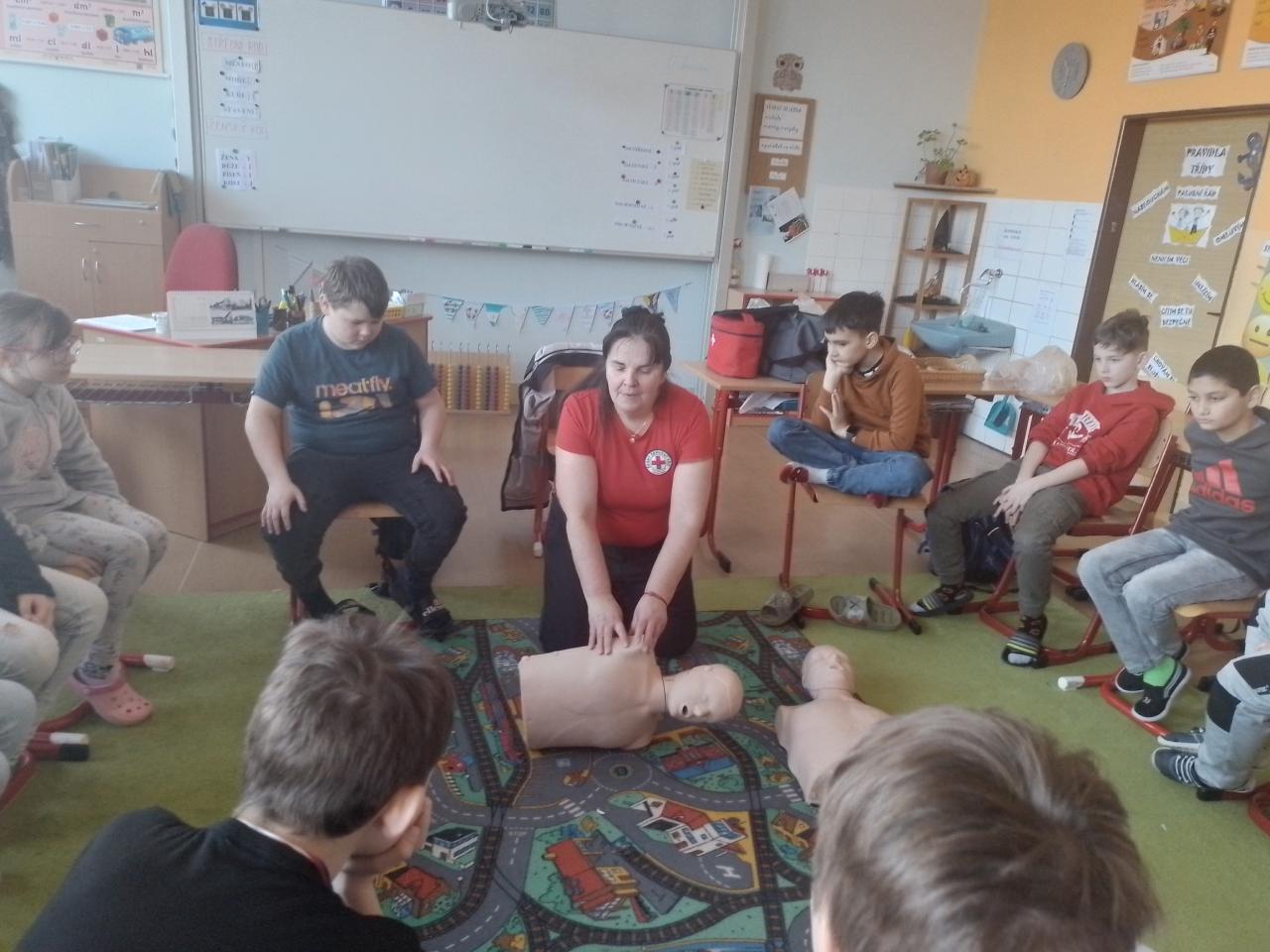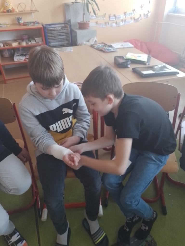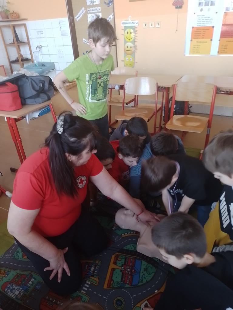 Naši třídu navštívila pracovnice ČČK K. Hora, společně jsme si zopakovali základy první pomoci. Připomněli jsme si modelové situace a jejich zvládání. (Jak pomoci zraněnému? Jak poskytnou první pomoc? Jak chránit sám sebe?)