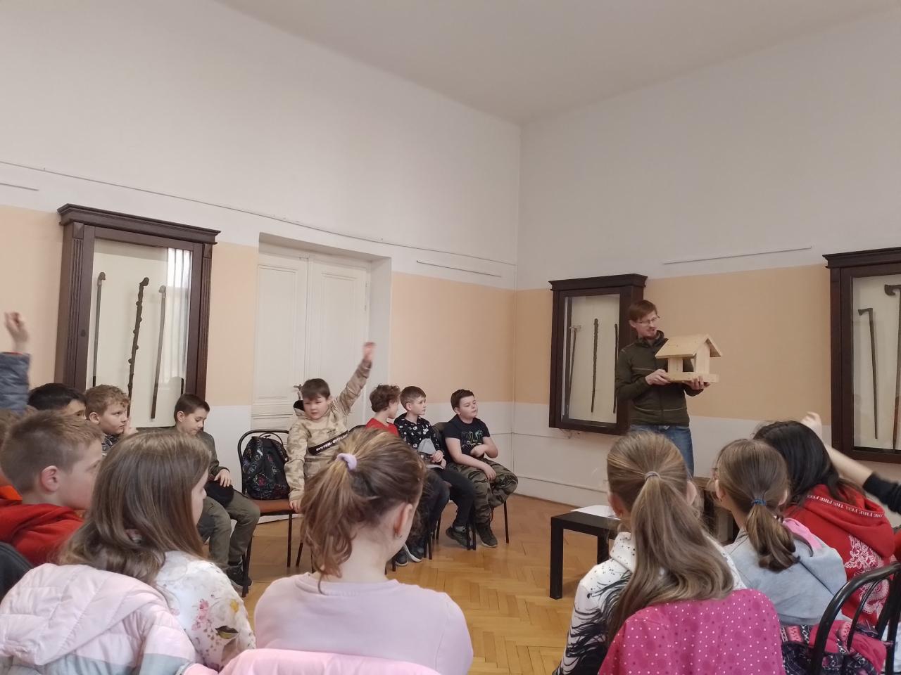 Úterní den jsme si zpříjemnili návštěvou Muzea v Čáslavi, kde nás čekala přednáška s ornitologem, panem Vlasákem. Téma - "Ptáčci a krmítka" jsme propojili s učivem přírodovědy. Program byl zajímavý, všichni bychom již nyní zvládli výrobu i toho nejjednoduššího krmítka. Dozvěděli jsme se, co se do krmítka může dávat a co ptáčci nesmí. Nechyběla ani soutěž ve družstvech na závěr - naplnění krmítek semínky (na čas).