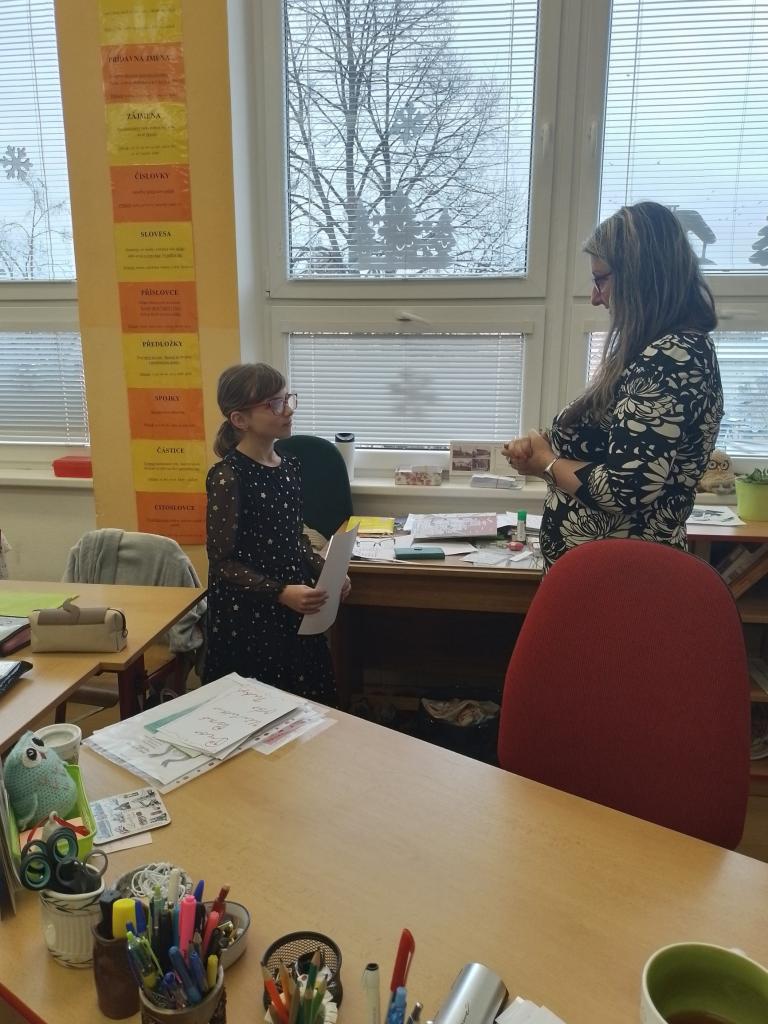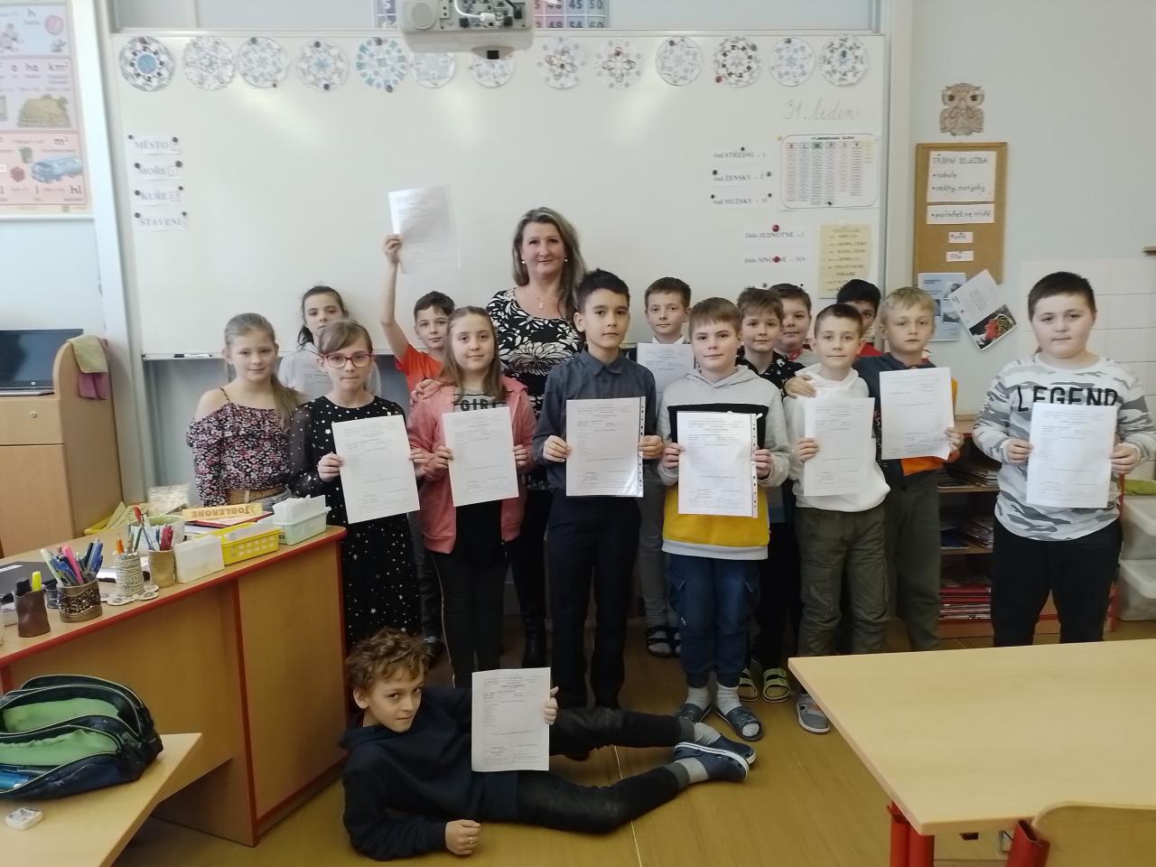 Dnešní den byl pro všechny výjmečný. Děti dostaly vysvědčení, byly ohodnoceny za svou práci v I. pololetí, těm nejvzornějším byla udělena pochvala. Každý si dnes více uvědomil své silné a slabé stránky, v čem se zlepšit, na čem dále pracovat..... Dnes jsme se učili, ale stihli jsme i pohádku. Společně jsme také probrali pravidla chování a důsledky jejich porušování.