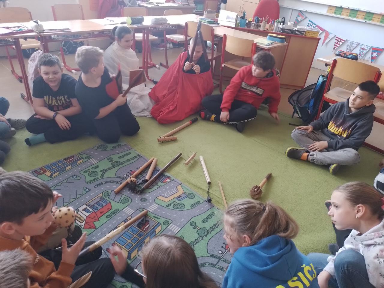 Jak se žilo ve středověku, jak se bojovalo a čím, si mohli vyzkoušet páťáci při zážitkové hodině vlastivědy...