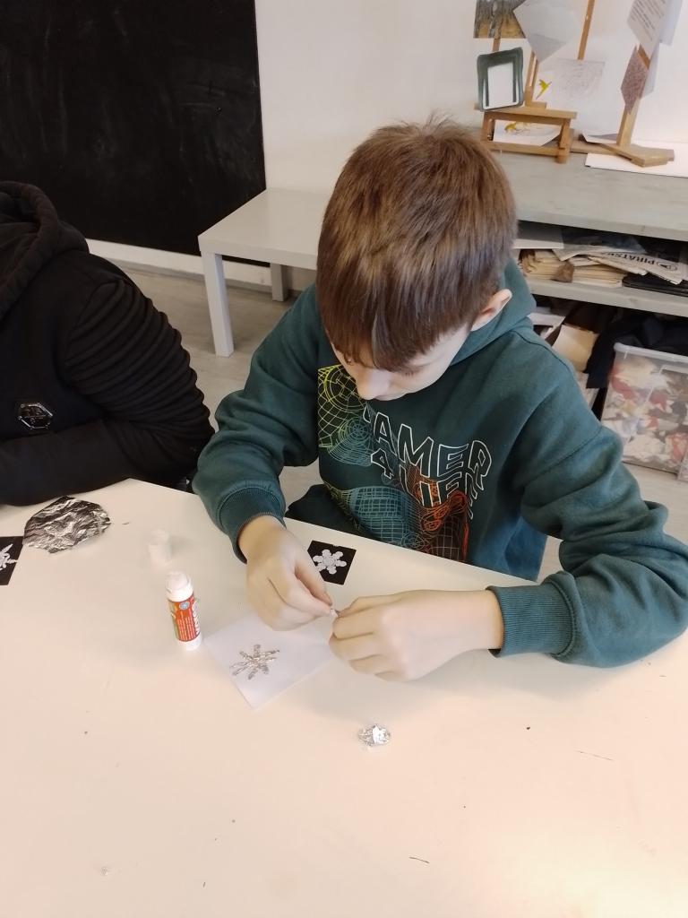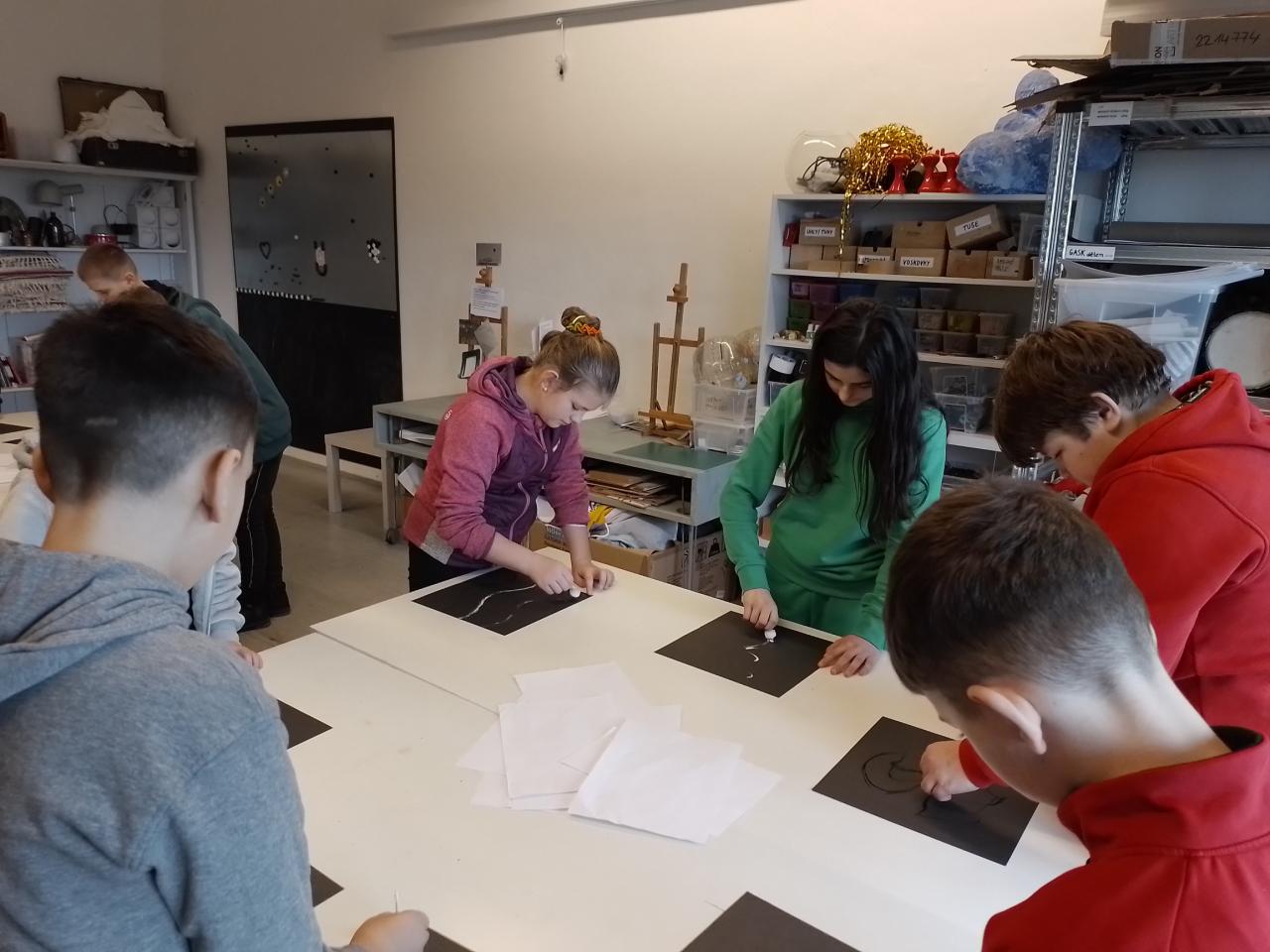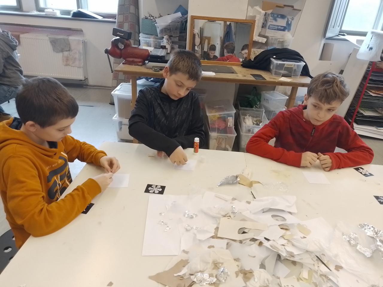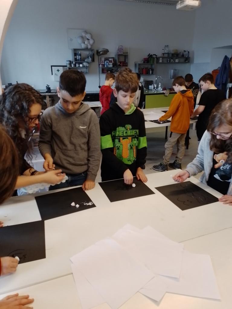 Oslovila nás výtvarná technika - grafika, zajímavé bylo kreslení ledem, práce s lisem a konečné originální grafické ztvárněné každé práce. Všechny naše výtvory byly originální a evokovaly zimu - padající vločky.