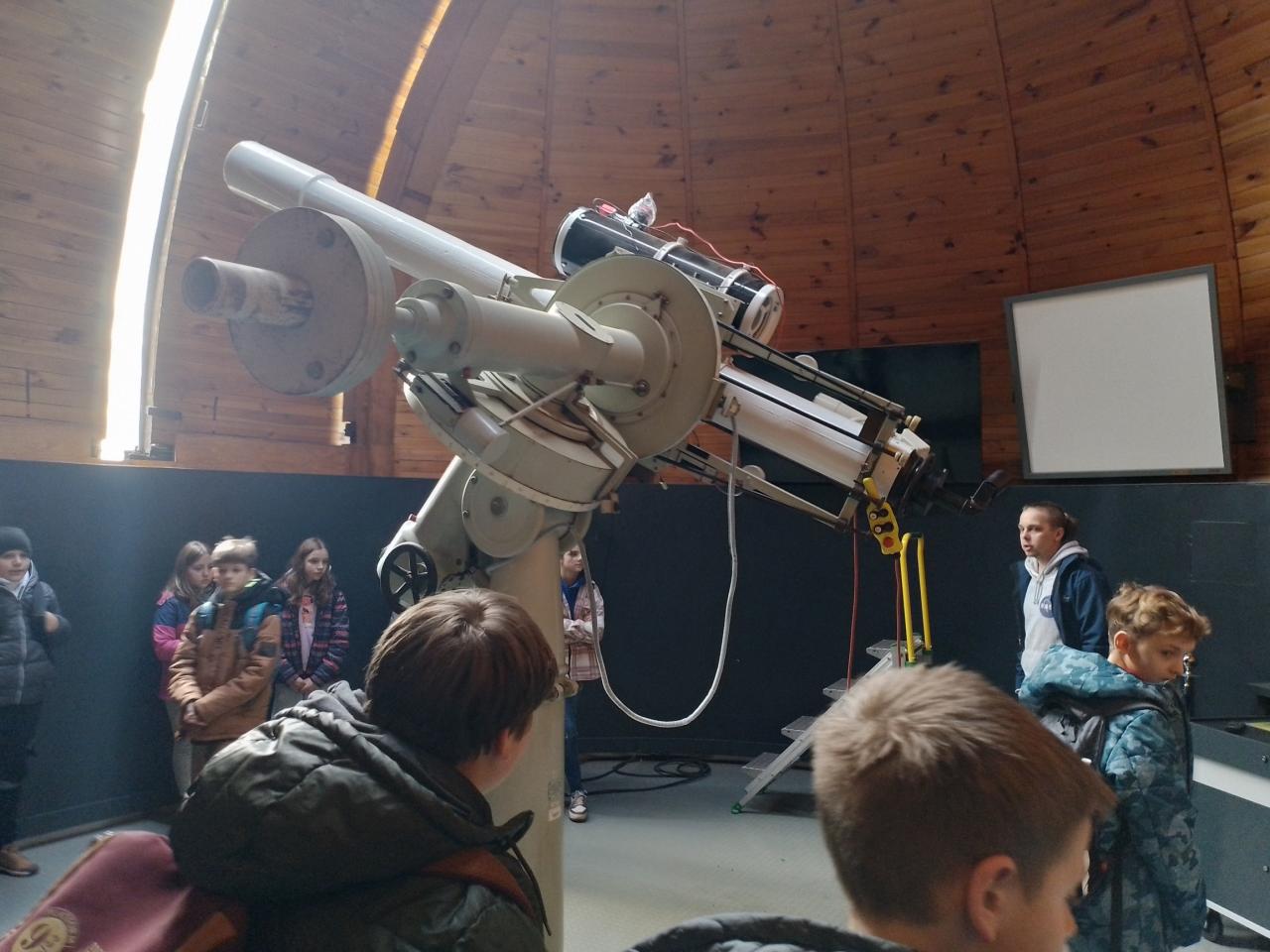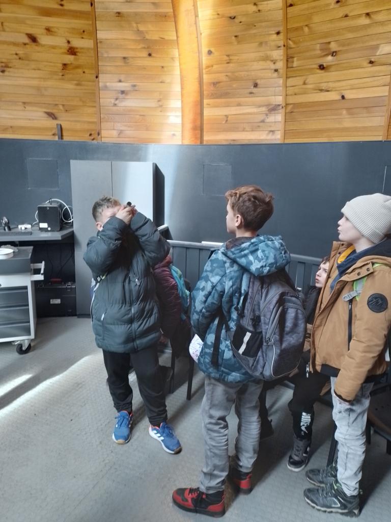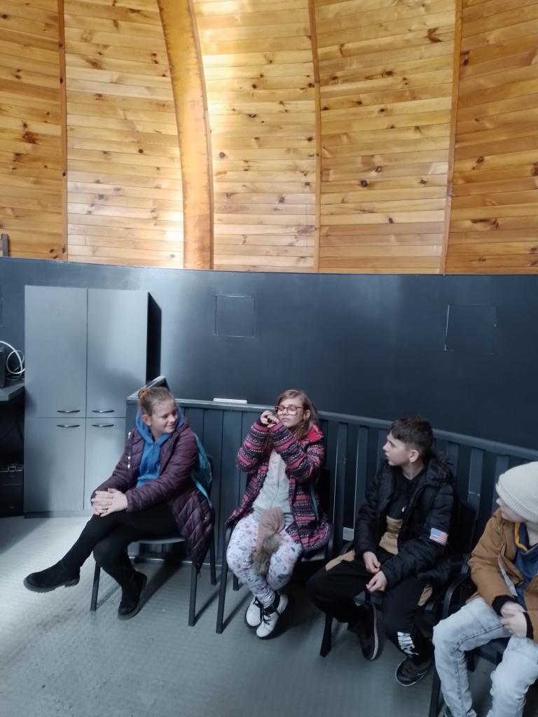 Ve hvězdárně jsme se seznámili s dalekohledy, prohlédli si měsíční kámen a dozvěděli se spoustu nových informací o pozorování hvězd a nebeské sféry.