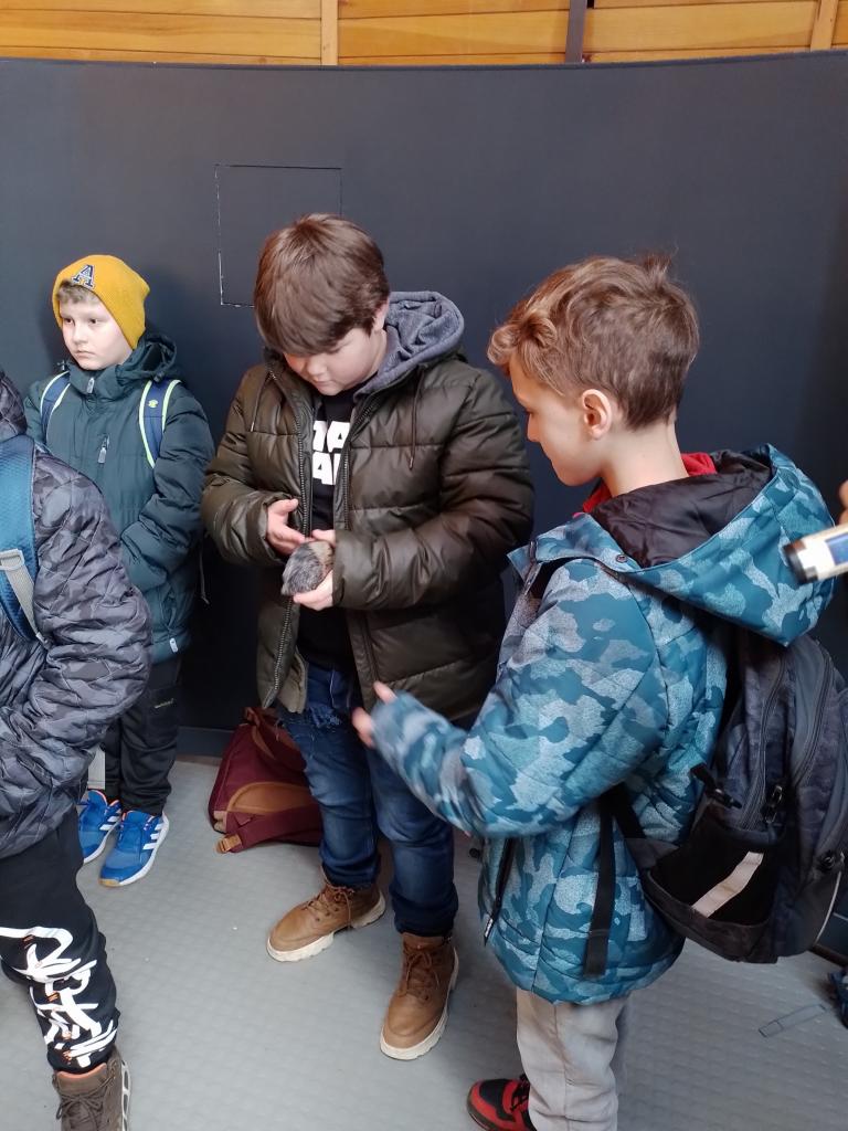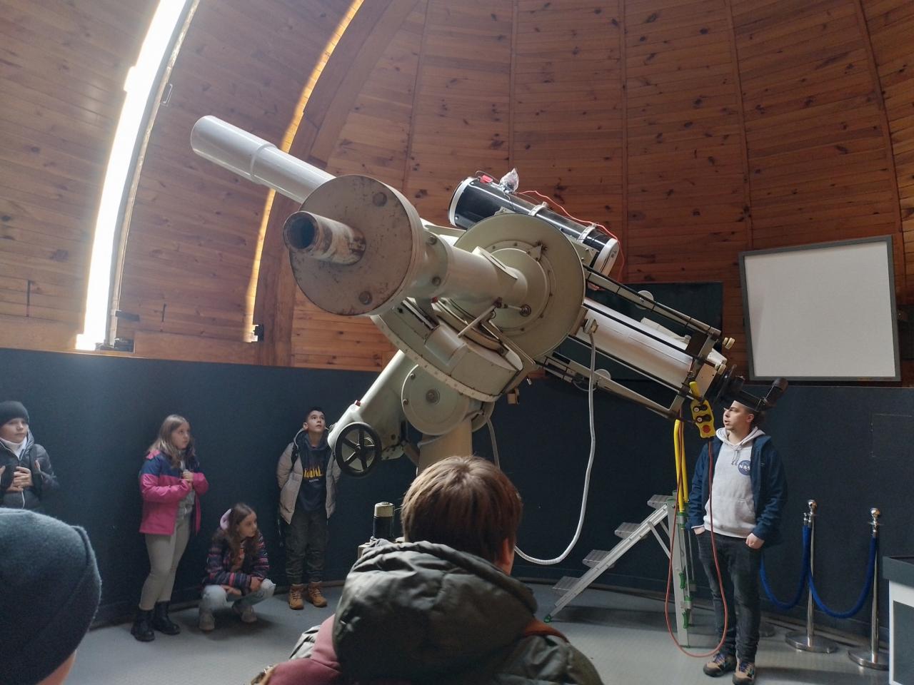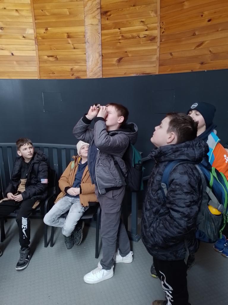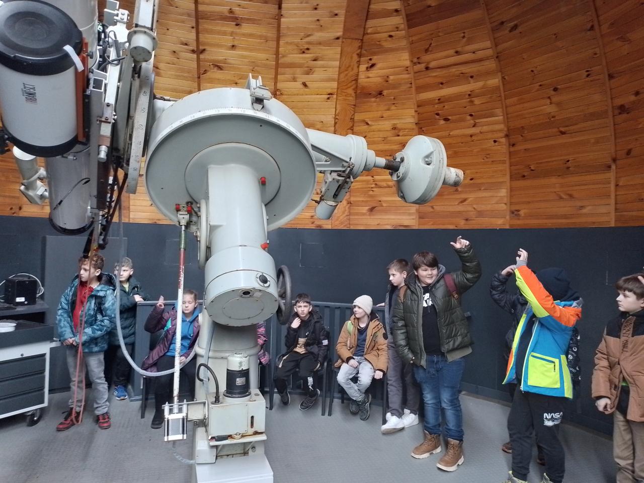 Ve hvězdárně jsme se seznámili s dalekohledy, prohlédli si měsíční kámen a dozvěděli se spoustu nových informací o pozorování hvězd a nebeské sféry.