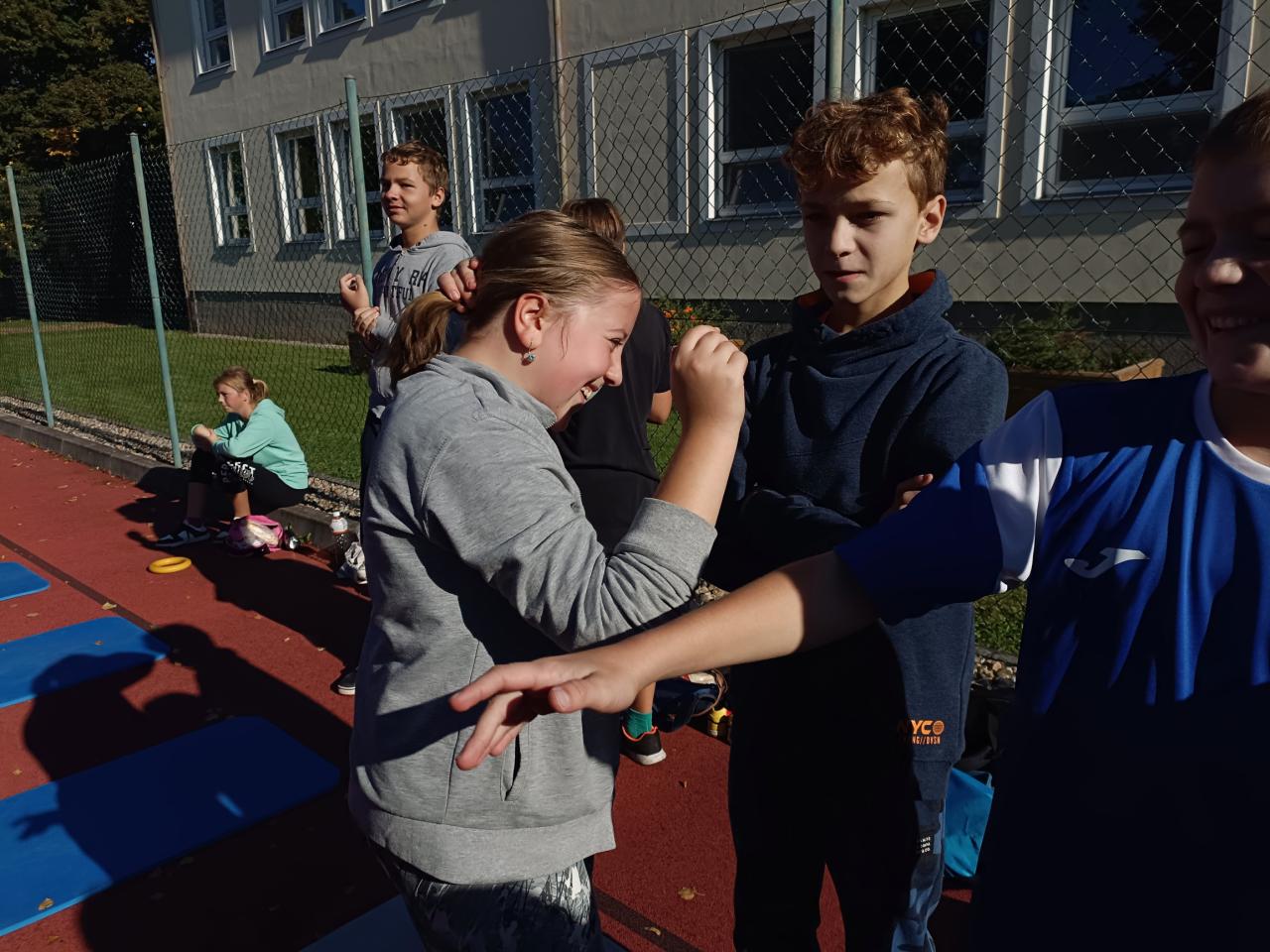 25.9. proběhl ve škole sportovní den, do kterého se zapojila samozřejmě i naše třída 6.B. První hodinu jsme se sešli ve třídě, kde jsme si kromě poučení o bezpečnosti připomněli také zásady fair-play, vyzkoušeli si naši koncentraci při postoji čápa a dozvěděli se zajímavé informace o historii i současnosti olympijských her. Potom už jsme se pustili do plnění jednotlivých disciplín, které jsme všichni díky vzájemné podpoře a povzbuzování zvládli.