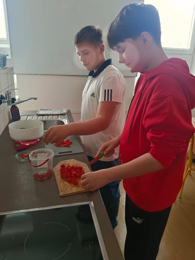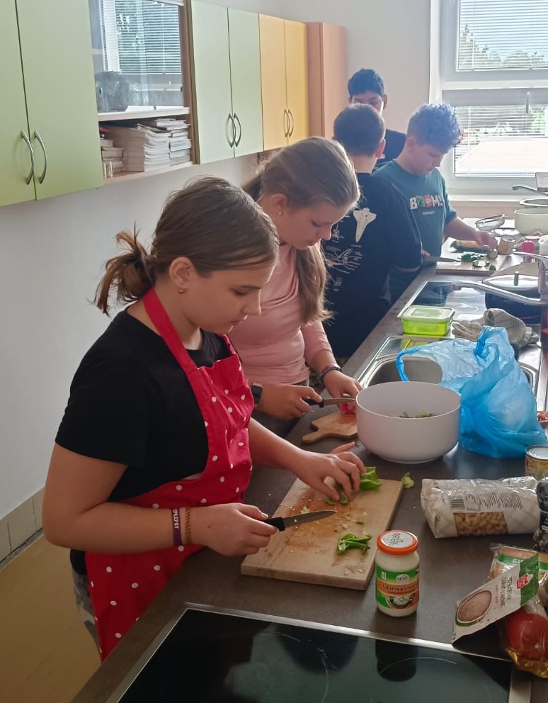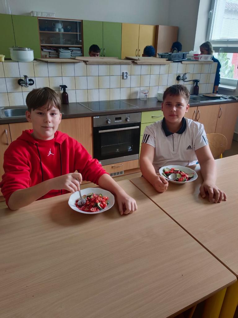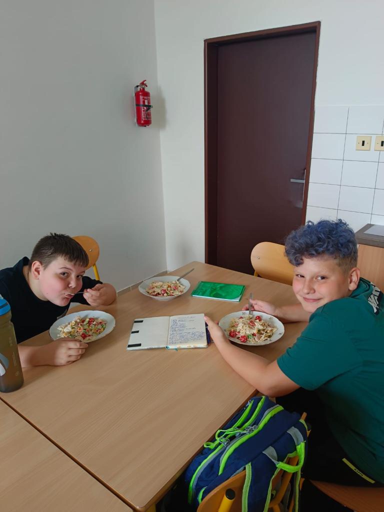 V rámci pracovního vyučování se letos sedmáci zdokonalují ve svých kuchařských dovednostech. Všichni se velmi snaží a jejich vlastnoručně vyrobené pokrmy jsou vynikající.