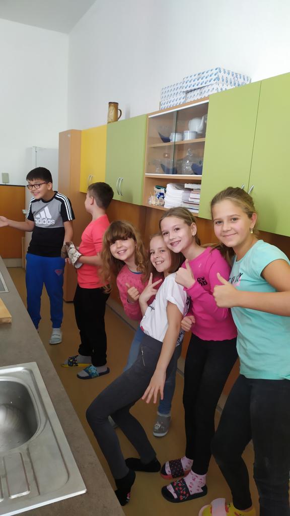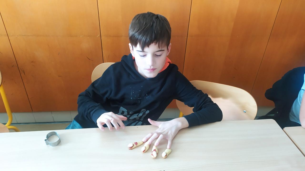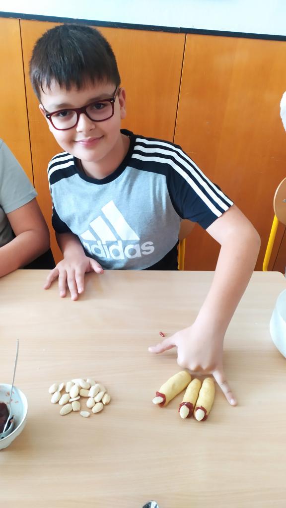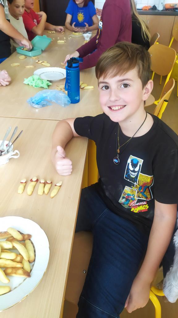 Naši spolužáci z devátých ročníků pro nás připravili zábavné (a trochu i strašidelné) soutěže. My jsme si vydlabali bubáky z dýní a upekli si halloweenské dobroty.